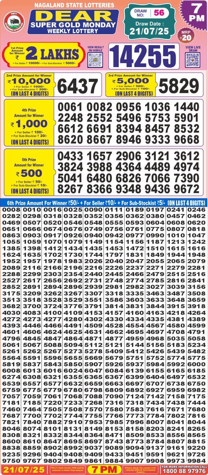 Golden Star weekly Lottery result 9pm 21.07.2025