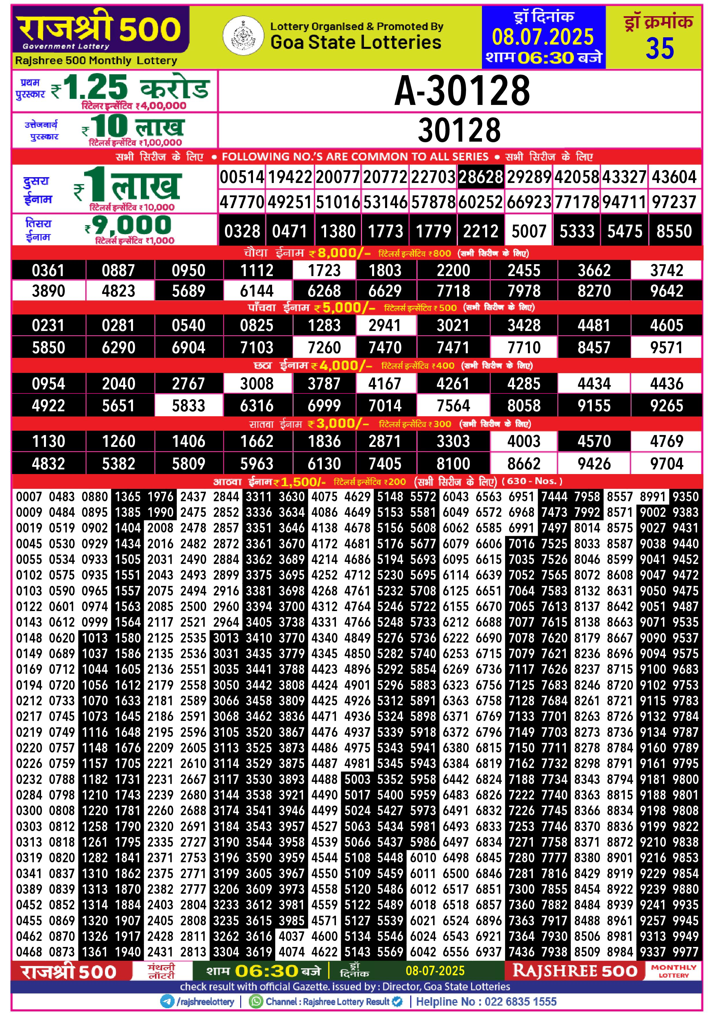 Rajshree 500 monthly lottery result 08.07.2025