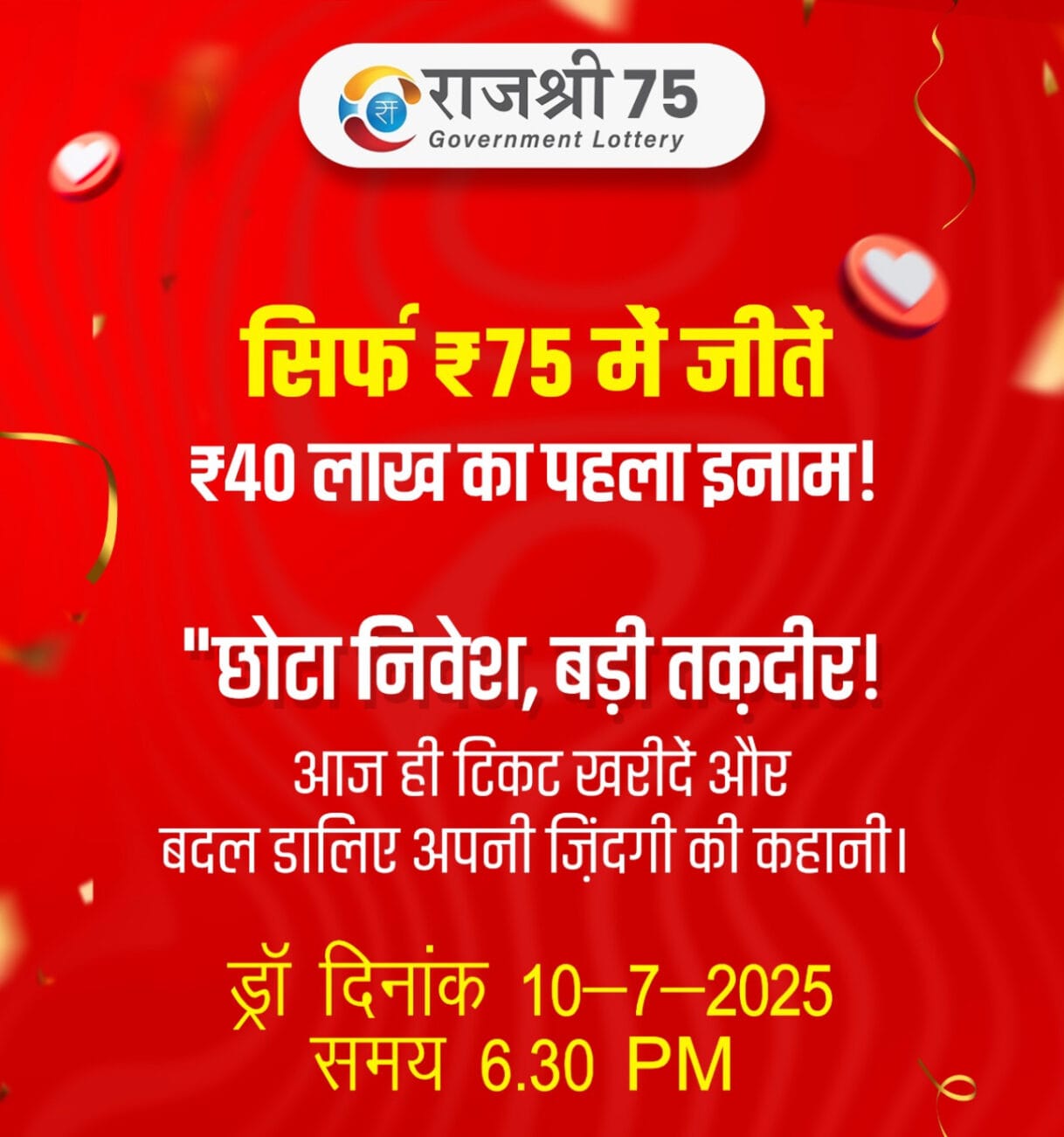 Rajshree 75 monthly lottery 10 July 2025 At 6.30pm
