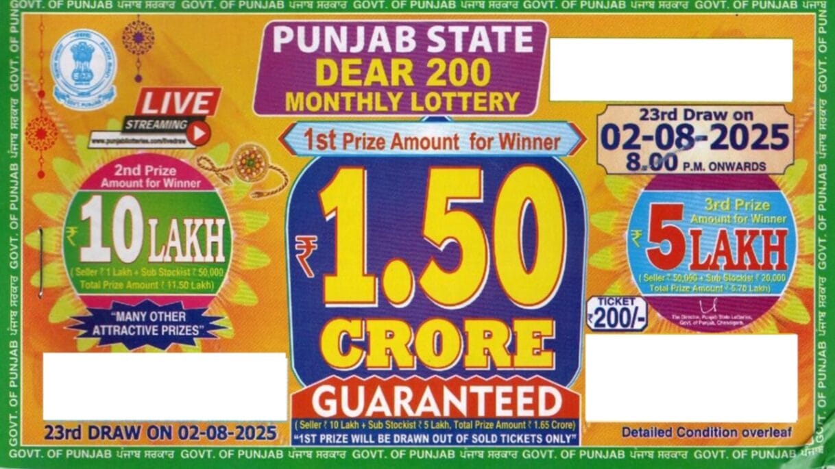 Punjab state dear 200 monthly lottery 2 August 2025 New Scheme
