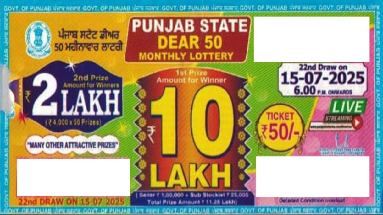 Punjab state dear 50 monthly lottery 15 July 2025 At 6 PM Onwards