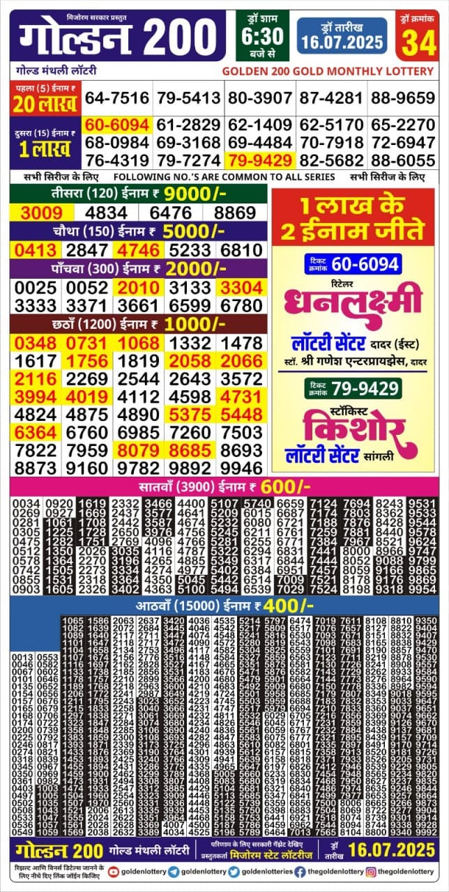 Golden 200 gold monthly lottery result 16.07.2025