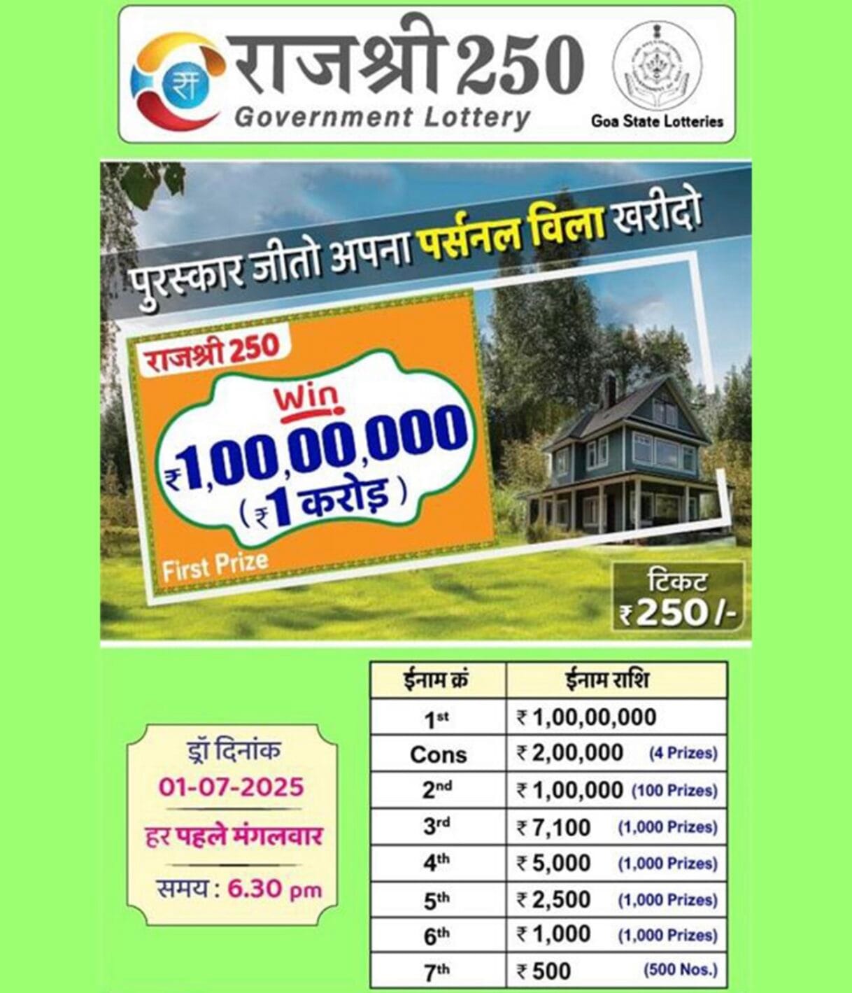 Rajshree 250 monthly lottery 1 July 2025 At 6:30 PM (Rathyatra Special)