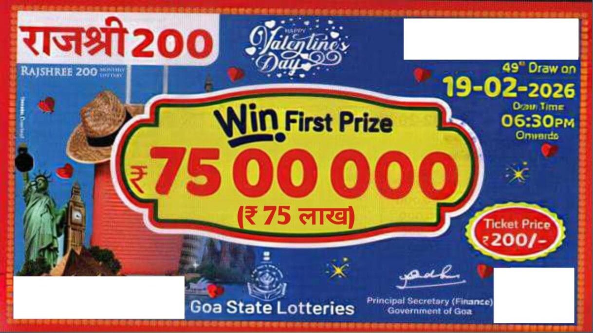 Goa State Rajshree 200 Monthly Lottery 19.2.2026 At 6.30 PM