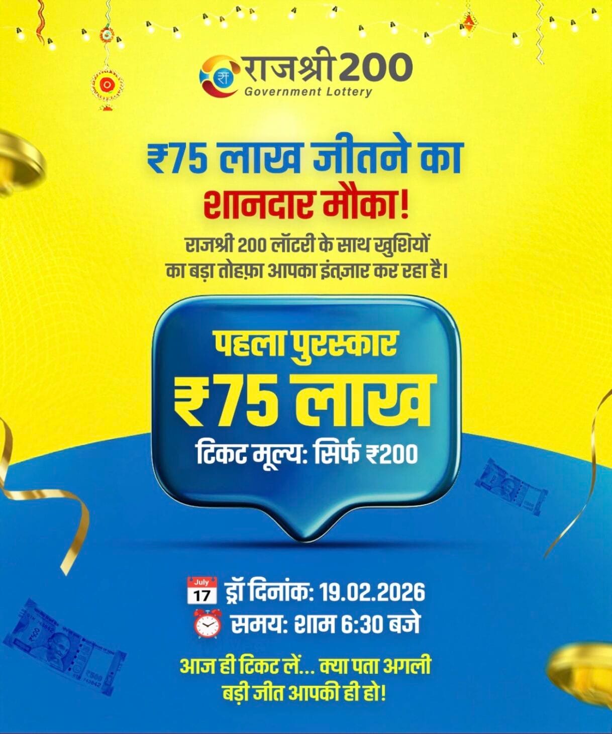 Rajshree 200 Monthly Lottery 19 Febraury 2026 At 6.30 PM