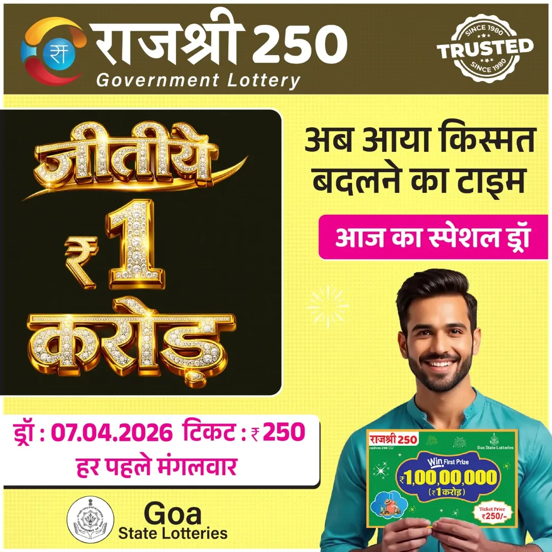 Goa State Rajshree 250 Monthly Lottery 7 April 2026 At 6.30 PM