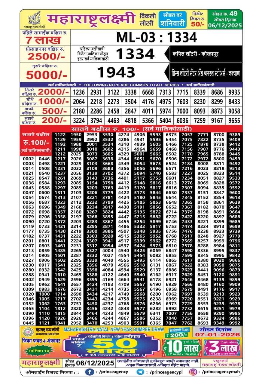 Maharashtra Laxmi Weekly Draw Result 06.12.2025