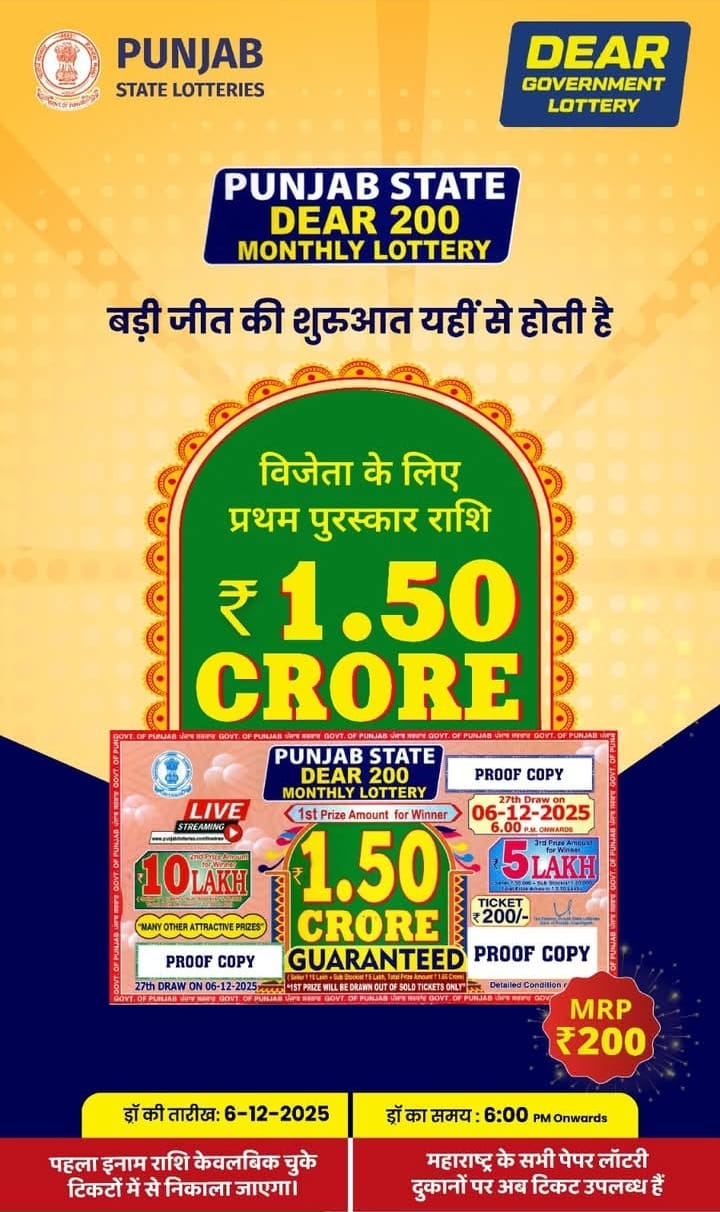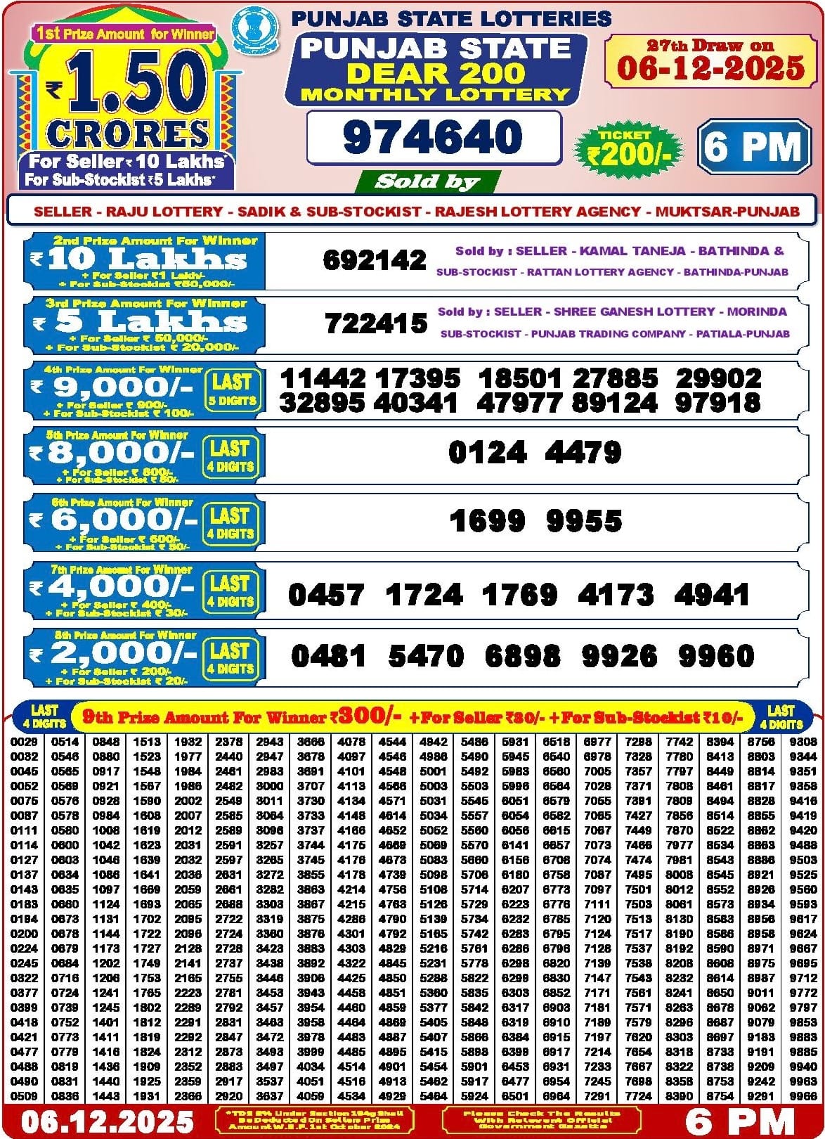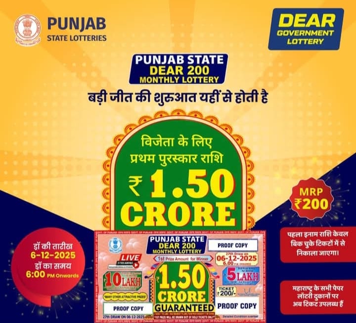 Punjab State Dear 200 Monthly Lottery 6 December 2025 At 6 PM