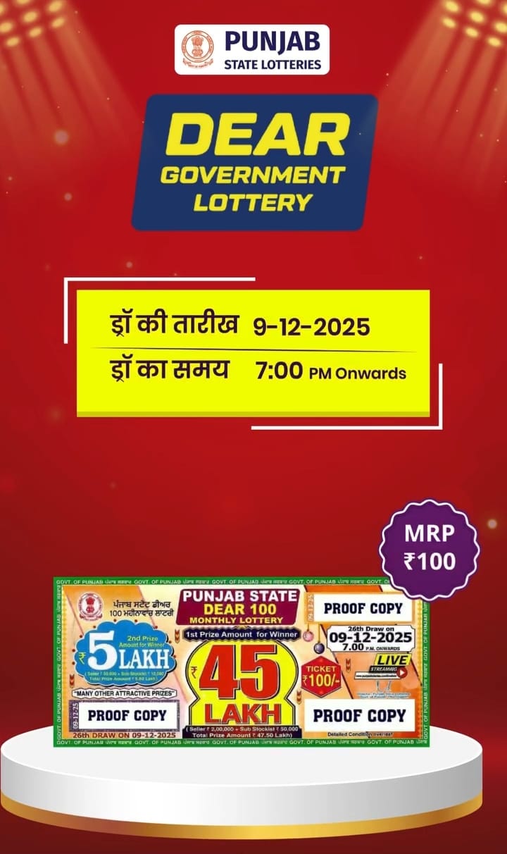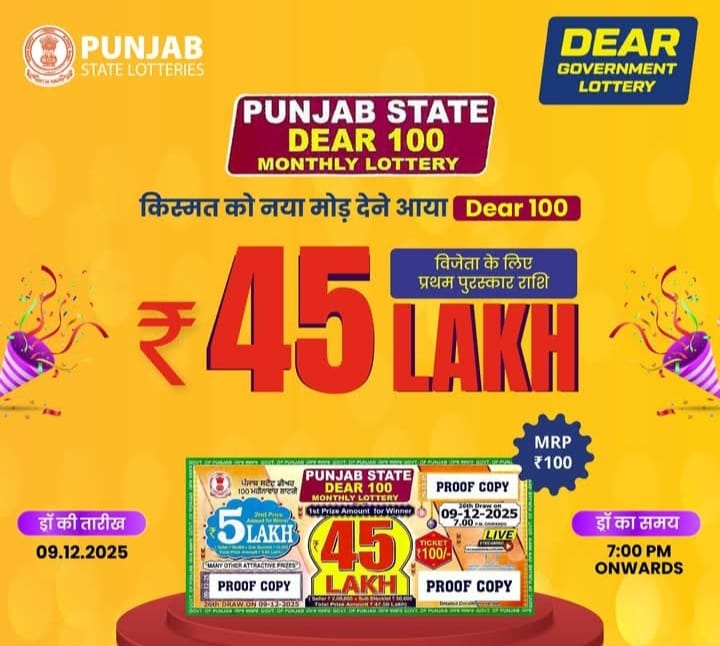 Punjab State Dear 100 Monthly Lottery 9 December 2025 At 7 PM