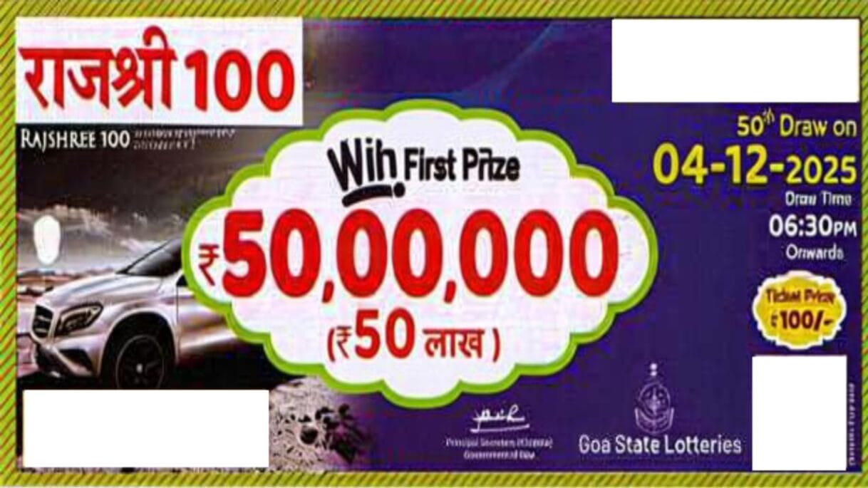 Goa State Rajshree 100 Monthly Lottery 4 December 2025 At 6.30PM