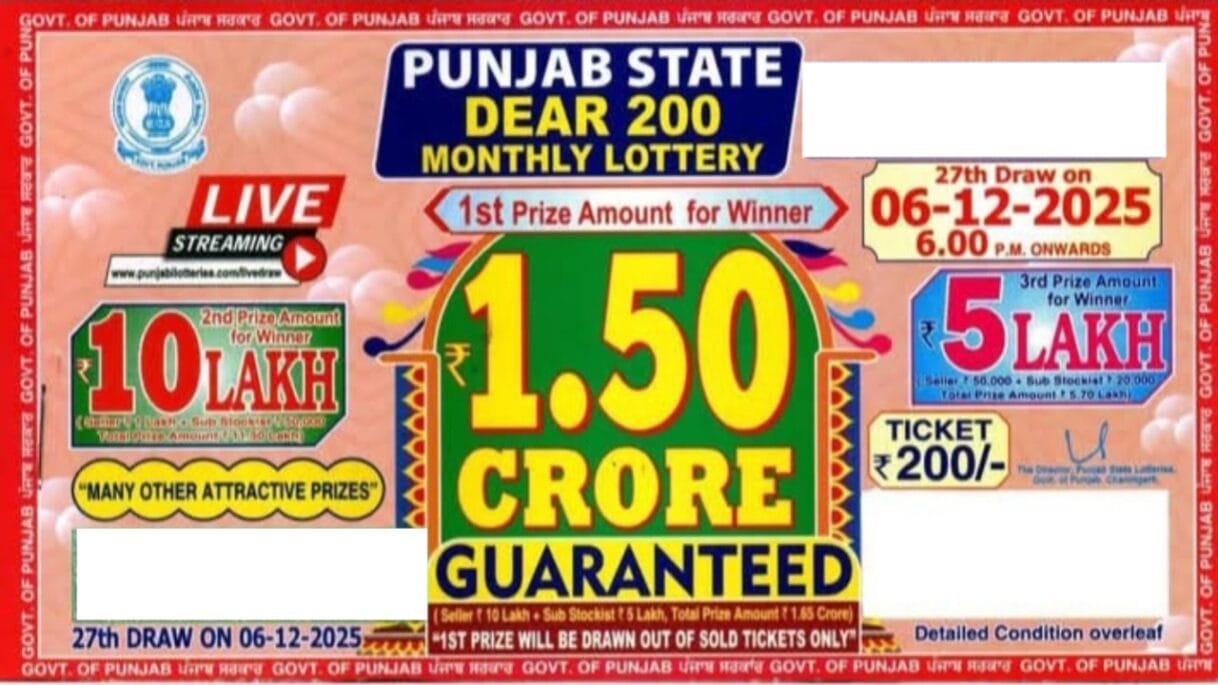 Punjab state dear 200 monthly lottery 6 december 2025 at 6pm