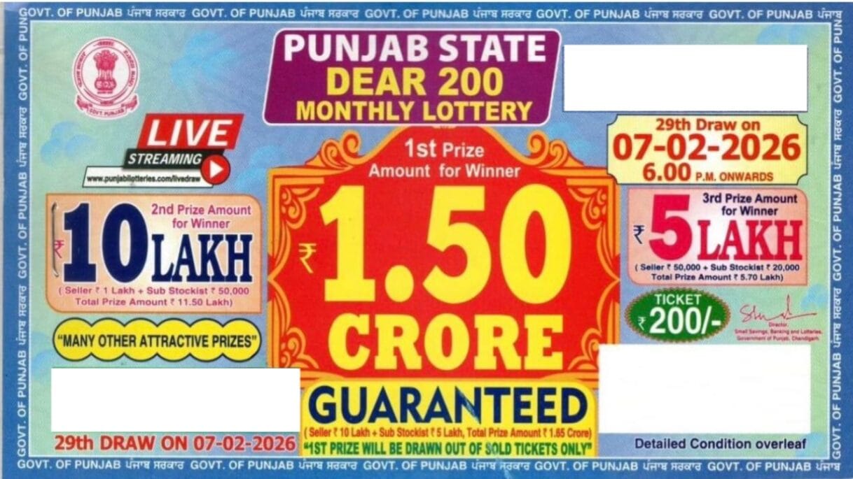 Punjab State Dear 200 Monthly Lottery 7 Febraury 2026 At 6 PM