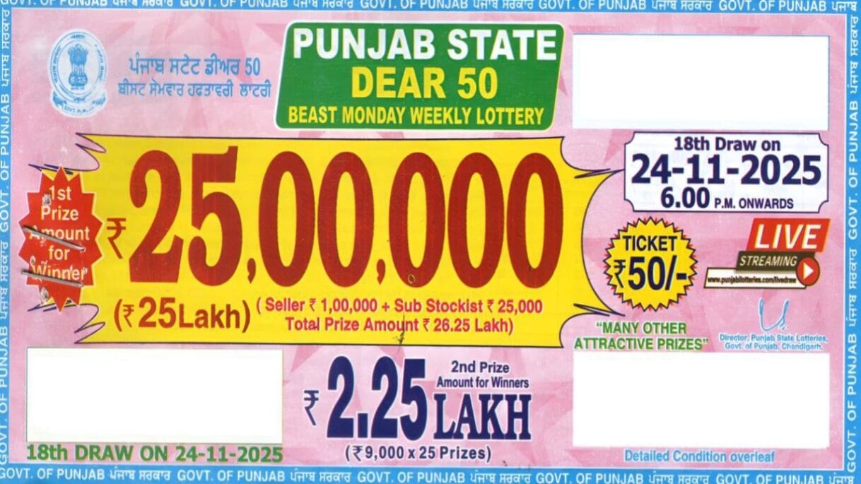Punjab State Dear 50 Beast Monday Weekly Lottery 24.11.2025 At 6 PM