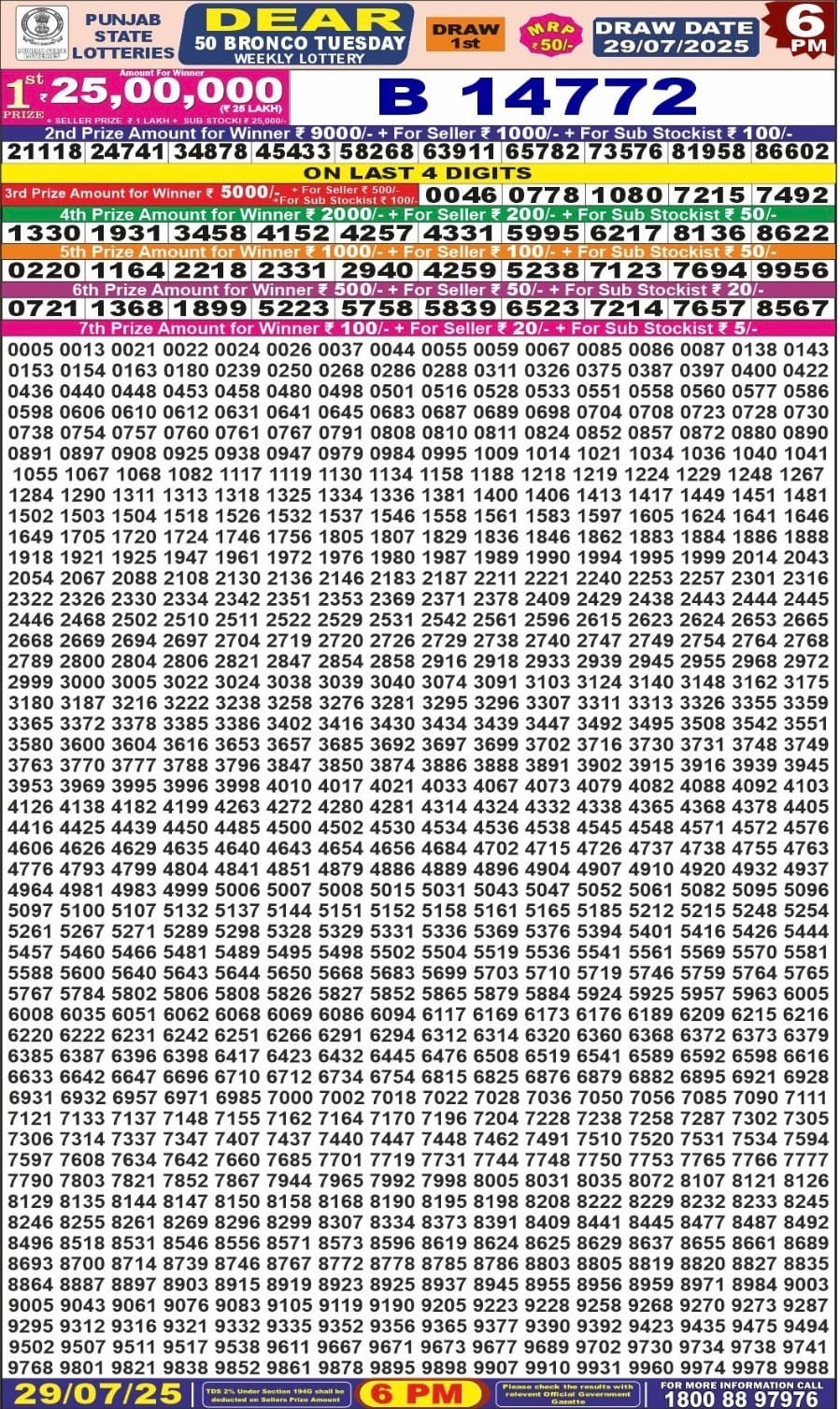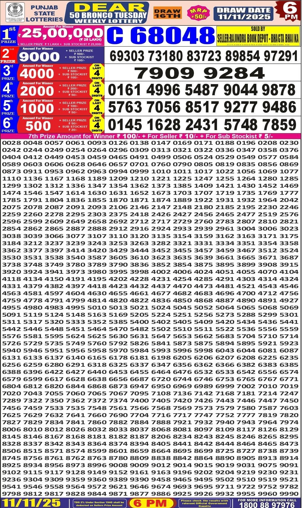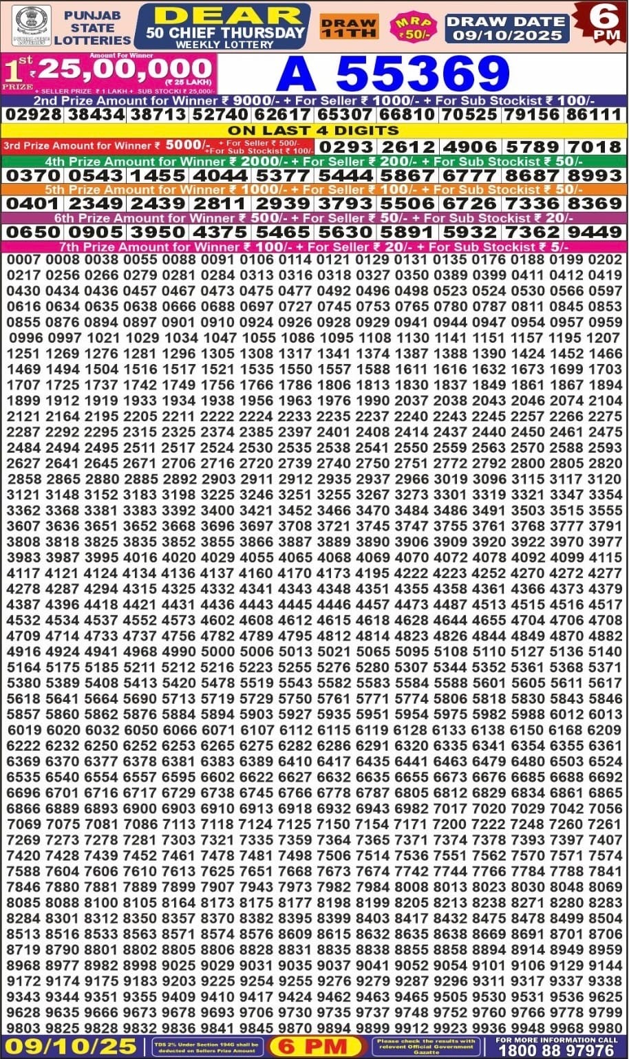 Punjab State Dear 20 Monthly Lottery 23 December 2025 At 7 PM