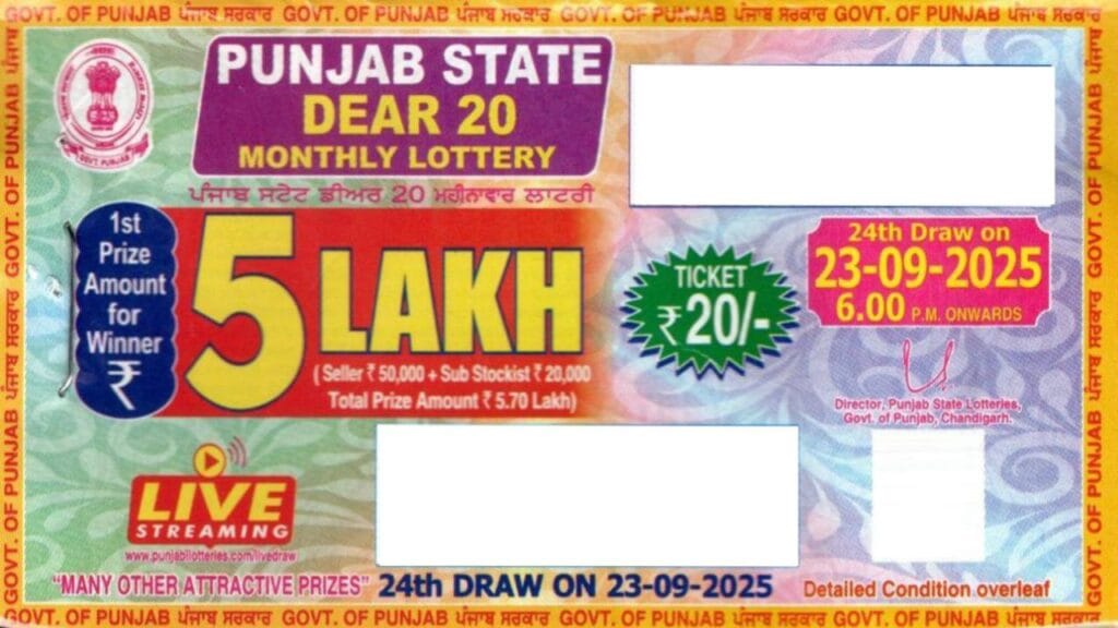 Punjab State Dear 20 Monthly Lottery 23 September 2025 At 6 PM
