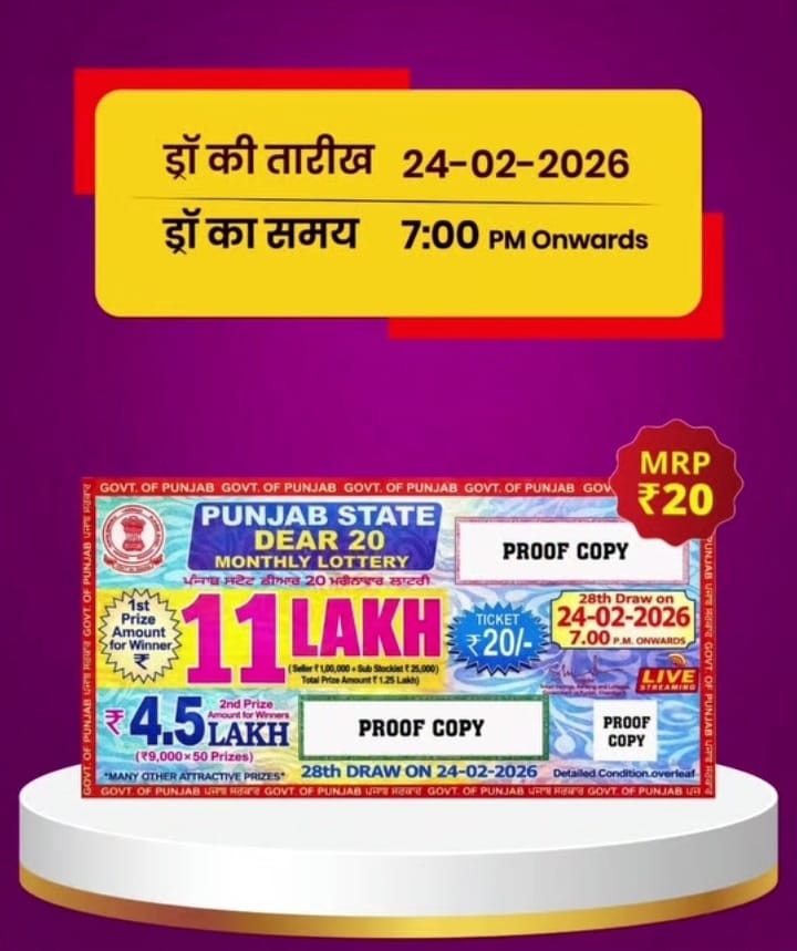 Punjab State Dear 20 Monthly Lottery 24 Febraury 2026 At 7 PM