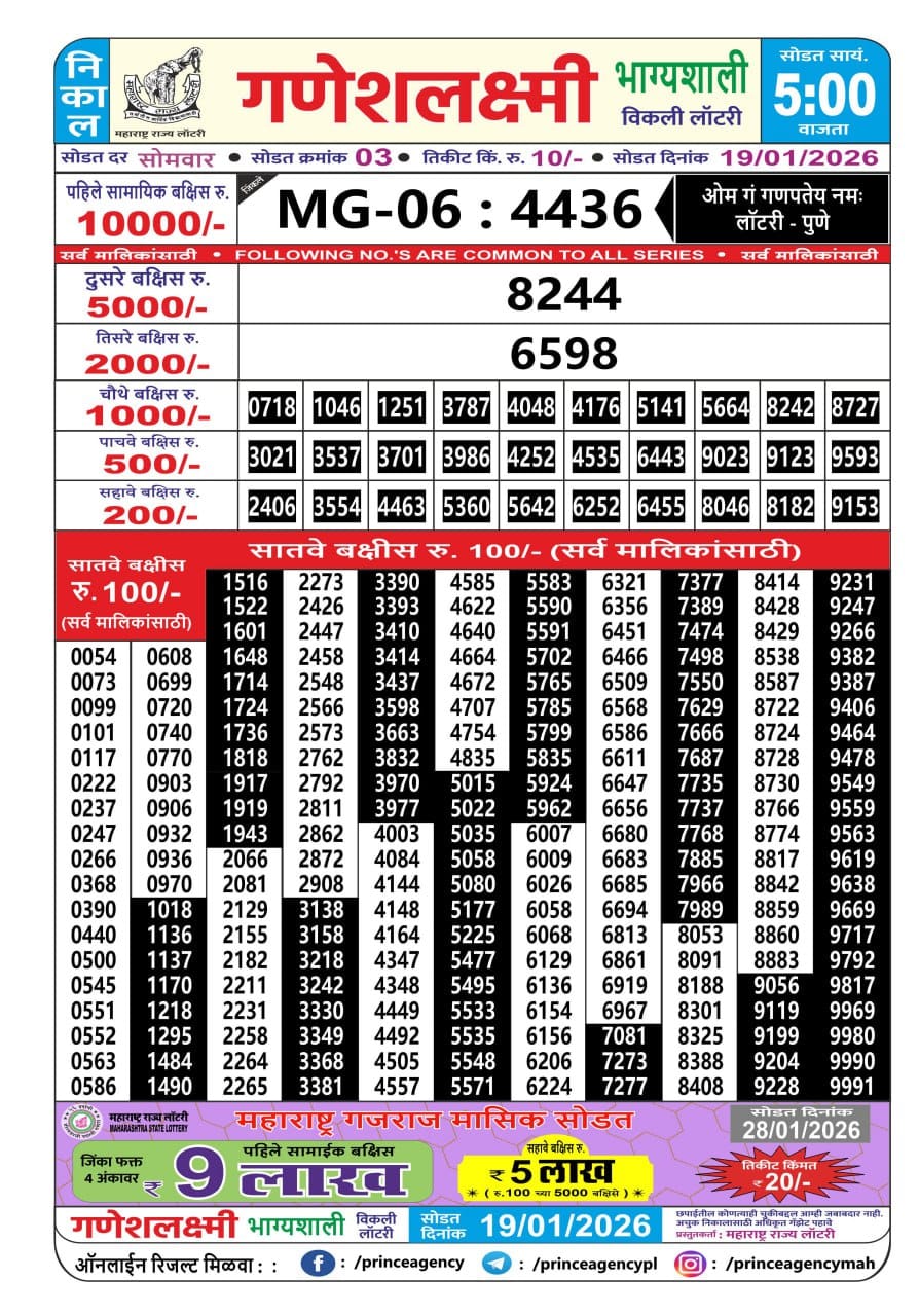 • Total five lakhs lottery tickets available in market numbering 500000 to 999999.