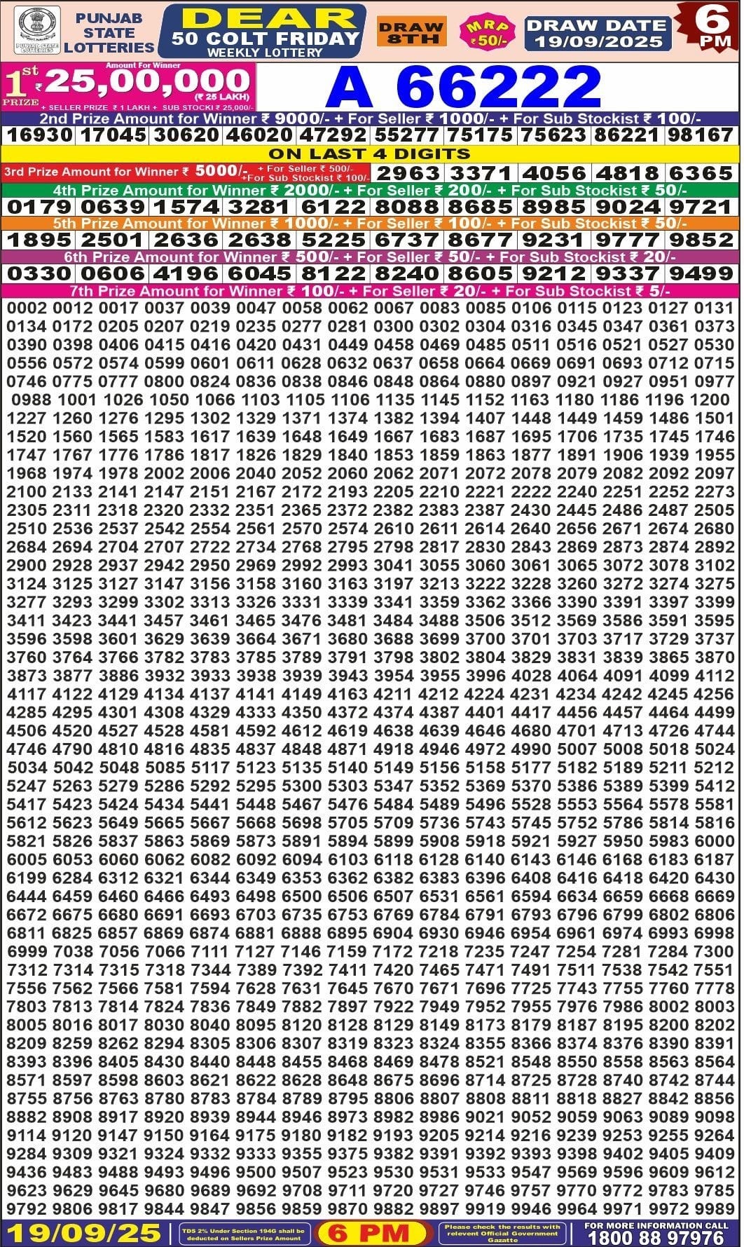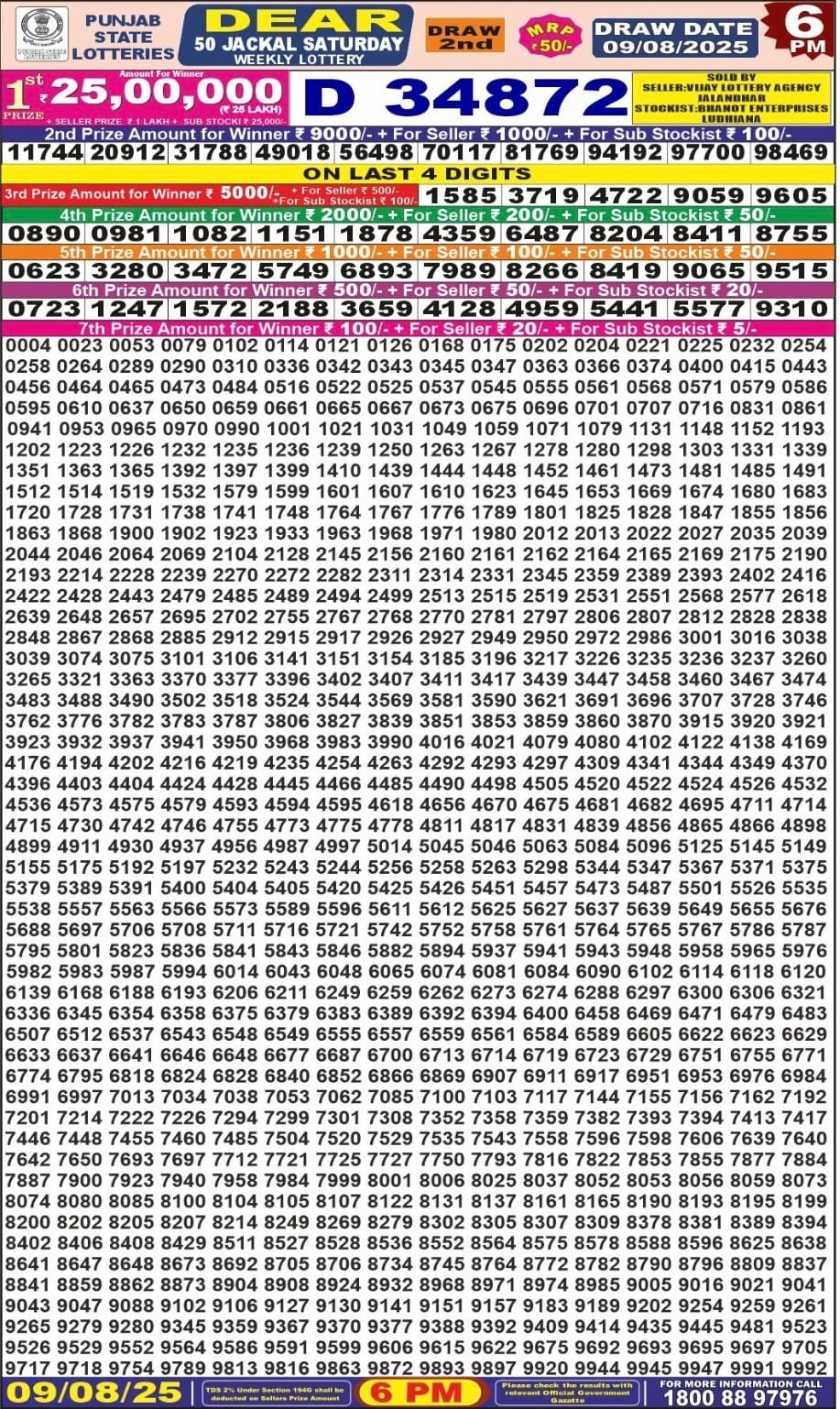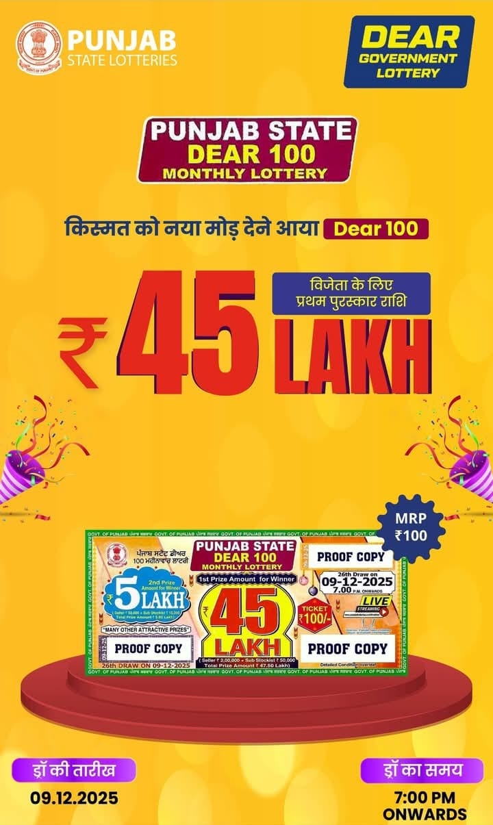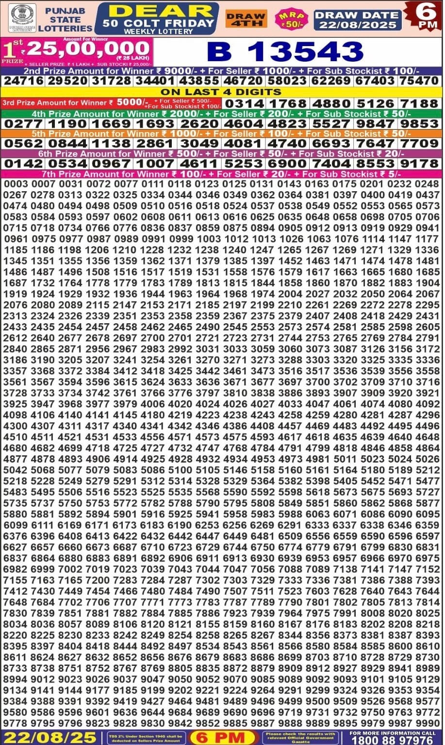 Punjab State Dear 50 Beast Monday 6pm Lottery Result 22.12.2025 0 Likes 22 Views Related Articles 0 72Punjab State Dear 50 Jackal Weekly 9.8.2025 At 6PM 0 56Maharashtra Ganeshlaxmi Vijayee Weekly Draw 05.11.2025 Result 5pm 0 74Punjab State Dear 50 6pm Lottery Result 22.08.2025 0 63Punjab State Dear 100 Monthly Lottery 9.12.2025 At 7 PM