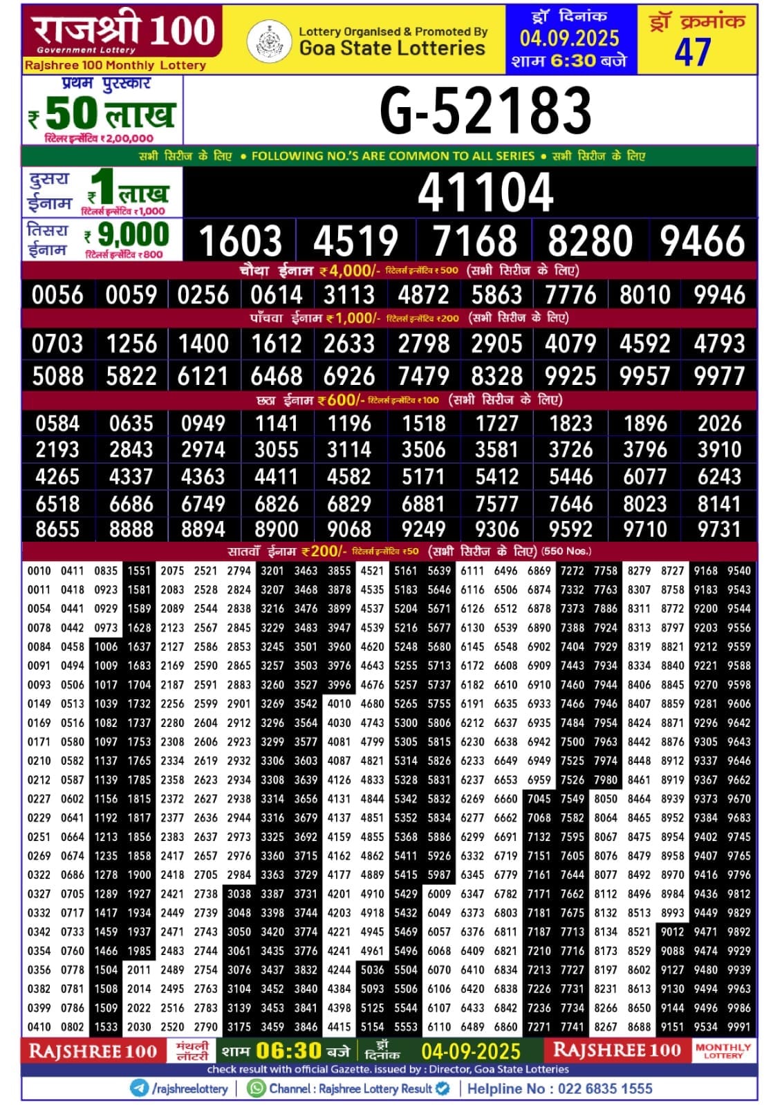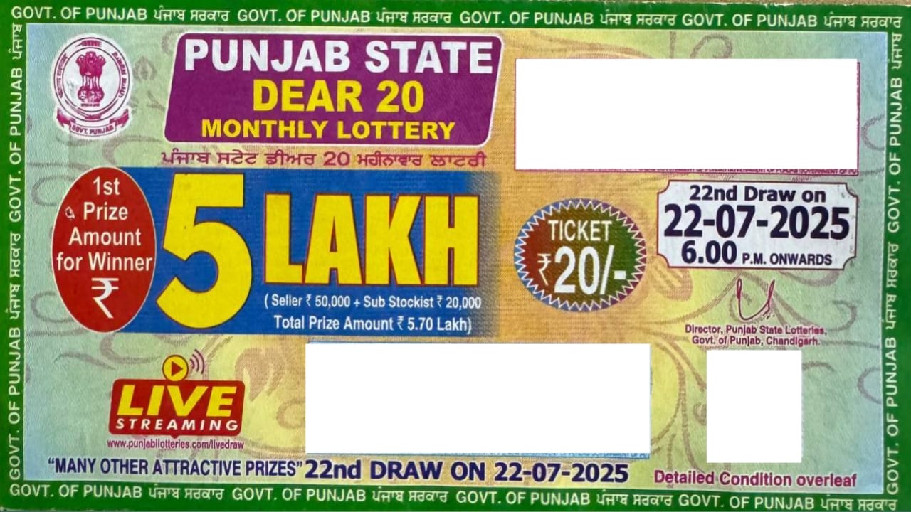 Punjab State Dear 50 Bronco Tuesday 6pm Lottery Result 16.12.2025 0 Likes 32 Views Related Articles 1 80Punjab state dear 20 monthly lottery 22-07-2025 at 6 PM 0 46Rajshree 500 Monthly Lottery 9.12.2025 Result 6.30 PM 0 45Punjab State Dear 50 Buster Wednesday 6pm Lottery Result 12.11.2025 1 66Rajshree 100 monthly lottery result 4.9.2025 At 6.30PM