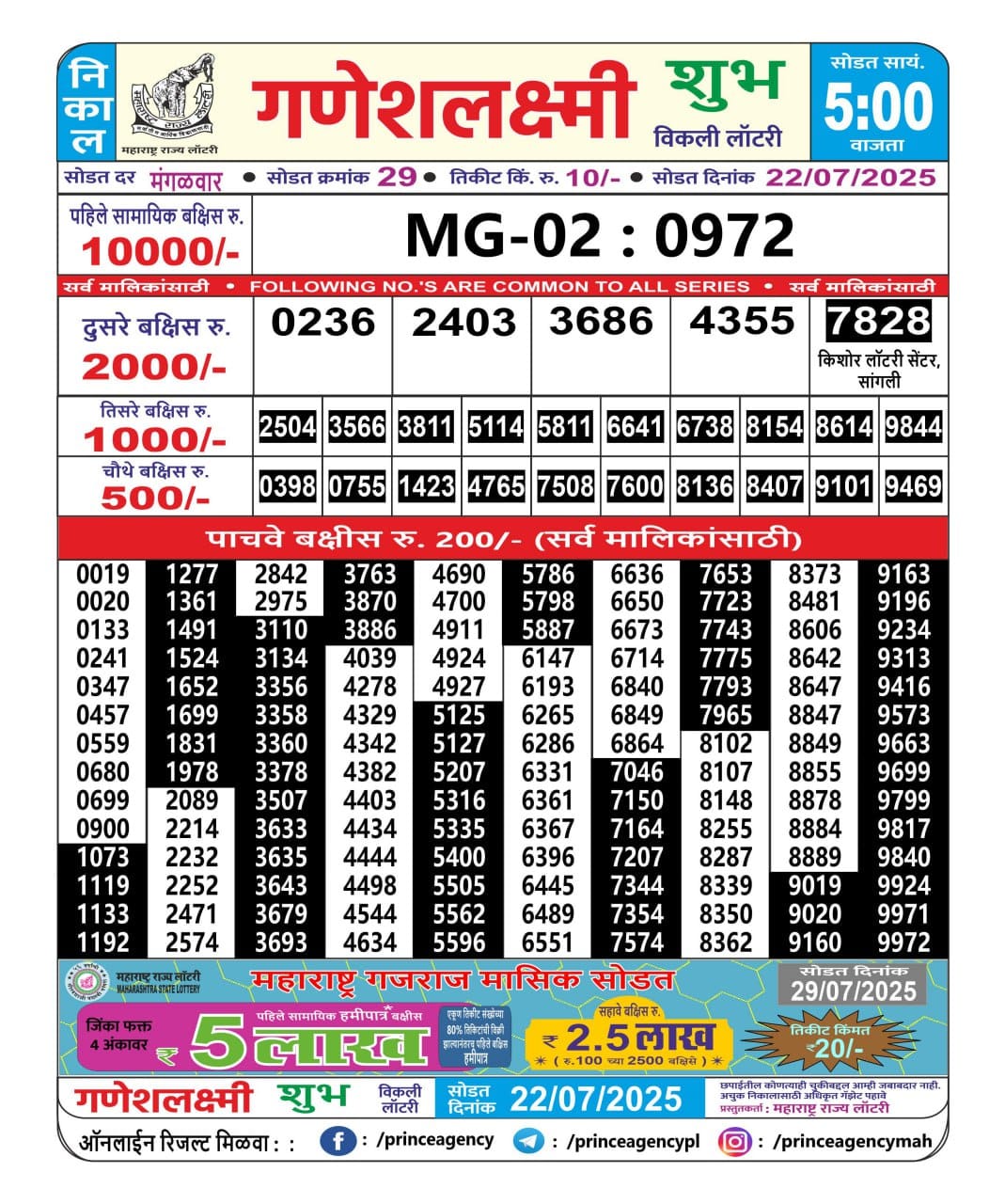 Punjab State Dear 50 Chief Thursday 6pm Lottery Result 11.09.2025 4 Likes 71 Views Related Articles 2 86Goa state rajshree 50 monthly lottery 27.11.2025 at 6.30pm 0 76Maharashtra Ganeshlaxmi Shubh Weekly Draw 22.07.2025 Result 5pm 2 87Punjab state dear 20 monthly lottery 23.9.2025 at 6pm 0 56Maharashtra Akshay Weekly Draw Result 12.11.2025