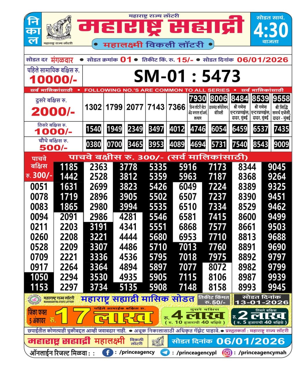 Punjab State Dear 50 Jackal Saturday Weekly Lottery 21.2.2026 Result 5 PM 0 Likes 19 Views Related Articles 0 106Punjab State Dear 50 Bronco Tuesday 6pm Lottery Result 19.08.2025 0 63Rajshree 200 monthly lottery 15.1.2026 at 6.30pm 0 117Maharashtra Ganeshlaxmi Vijayee Weekly Draw 10.12.2025 Result 5pm 0 117Maharashtra Sahyadri Mahalaxmi Weekly Draw 06.01.2026 Result 4.30pm