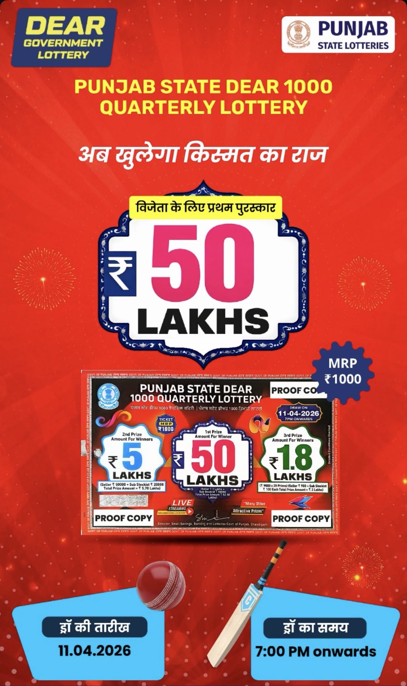 Punjab State Dear 50 Ranger Sunday 6pm Lottery Result 01.02.2026 0 Likes 71 Views Related Articles 0 94Punjab State Dear 50 Jackal Saturday Weekly Lottery 7.2.2026 Result 5 PM 0 98Maharashtra Sahyadri Deeplaxmi Weekly Draw 22.01.2026 Result 4.30pm 0 15Punjab State Dear 1000 Quarterly Lottery 11 April 2026 At 7 PM 0 124Punjab State Dear 50 Chief Thursday 6pm Lottery Result 30.10.2025