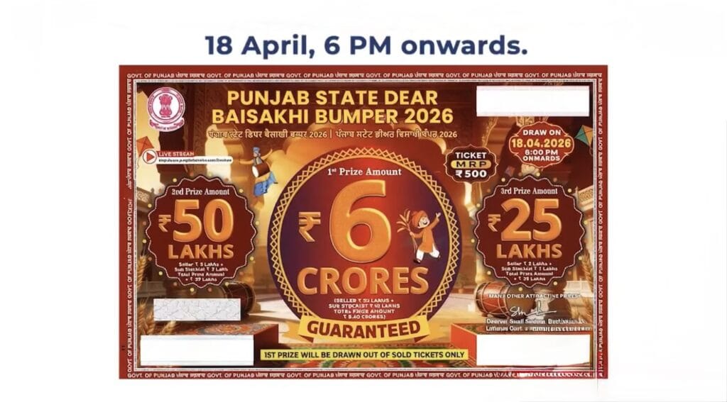 Punjab State Dear Baisakhi Bumper Draw On Saturday, 18 April 2026 At 6 PM Onwards. You can watch result on our site lotteryresultsnow.in