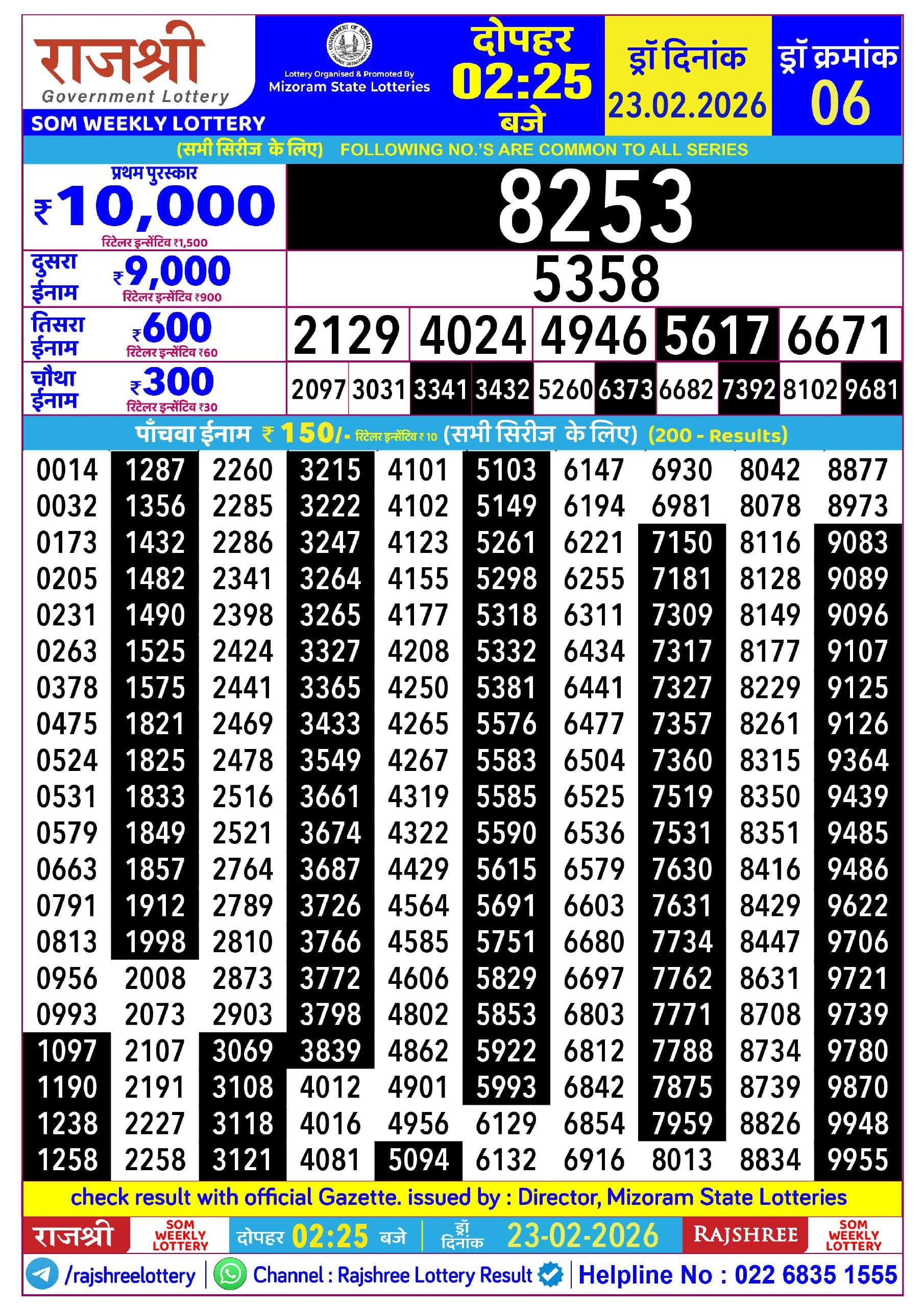 Goa state rajshree 200 monthly lottery draw one time in a month on every third thursday of month and enhance the chance of winning ₹75 lakhs grand prize and many more attractive results with ₹200/-