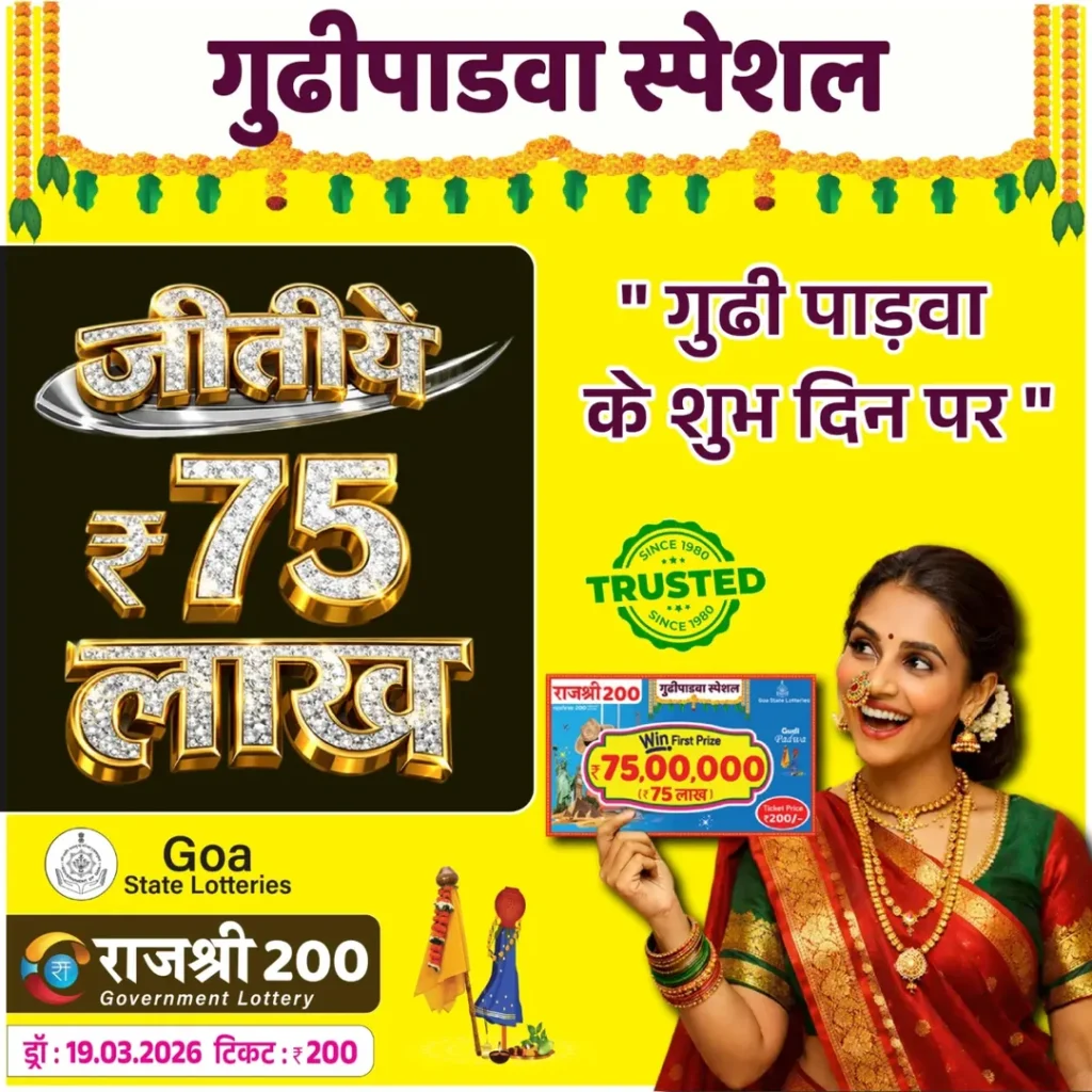 Goa State Rajshree 200 Monthly Lottery 50th Draw On Thursday, 19 March 2026 At 6.30 PM. You can watch result on our website lotteryresultsnow.in