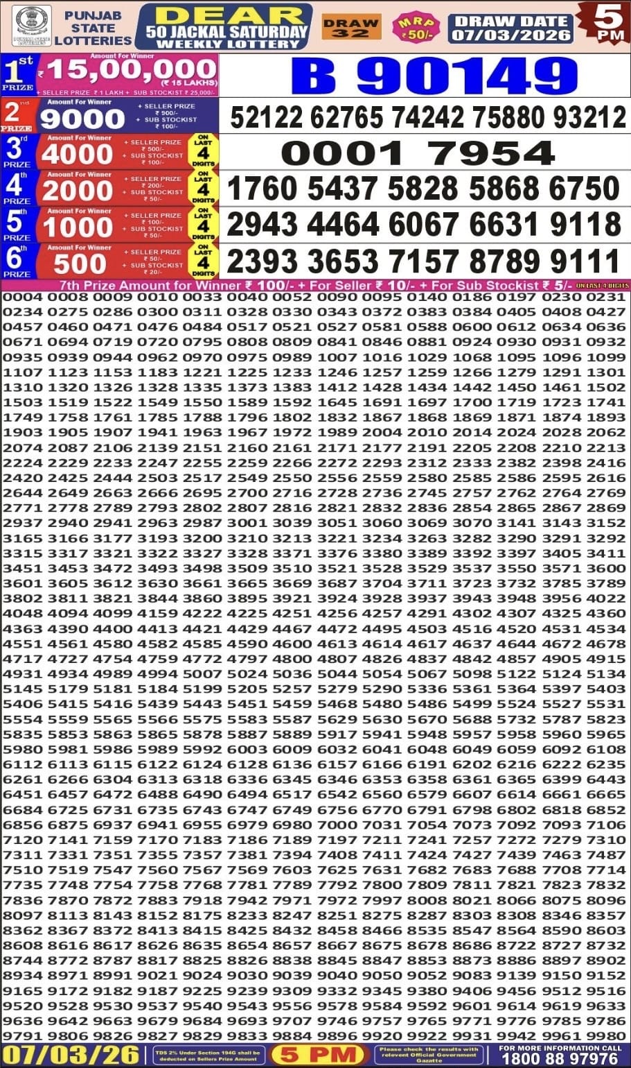 Rajshree 10 Evening Budh Weekly Lottery 18.03.2026 Result 5.40 PM 0 Likes 89 Views Related Articles 0 63Rajshree 10 Evening Shukra Weekly Lottery 20.2.2026 Result 5.40 PM 0 28Rajshree 10 Evening Ravi Weekly Lottery 29.03.2026 Result 5.40 PM 0 52Maharashtra Sahyadri Mahalaxmi Weekly Draw 20.01.2026 Result 4.30pm 1 179Punjab dear 100 monthly lottery 08.07.2025 result 6pm