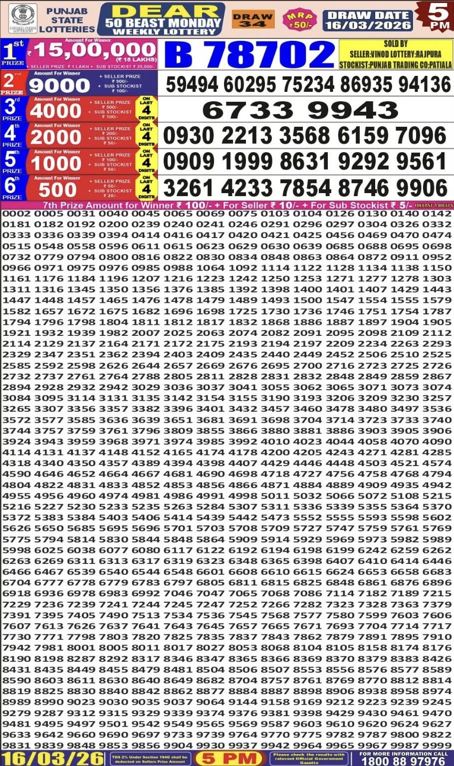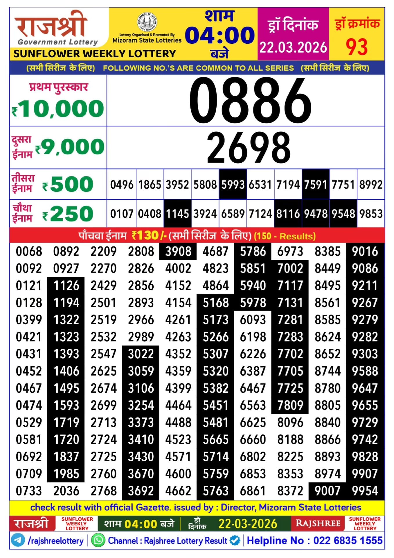 Rajshree 10 Evening Shani Weekly Lottery 04.04.2026 Result 5.40 PM 0 Likes 16 Views Related Articles 0 51Rajshree Guru Weekly Lottery 19.2.2026 Result 2.25 PM 0 84Rajshree 500 Monthly Lottery 10.2.2026 Result 6.30 PM 0 35Rajshree Sunflower Weekly Lottery 22.03.2026 Result 4 PM 0 38Punjab State Dear 50 Beast Monday Weekly Lottery 16.03.2026 Result 5 PM
