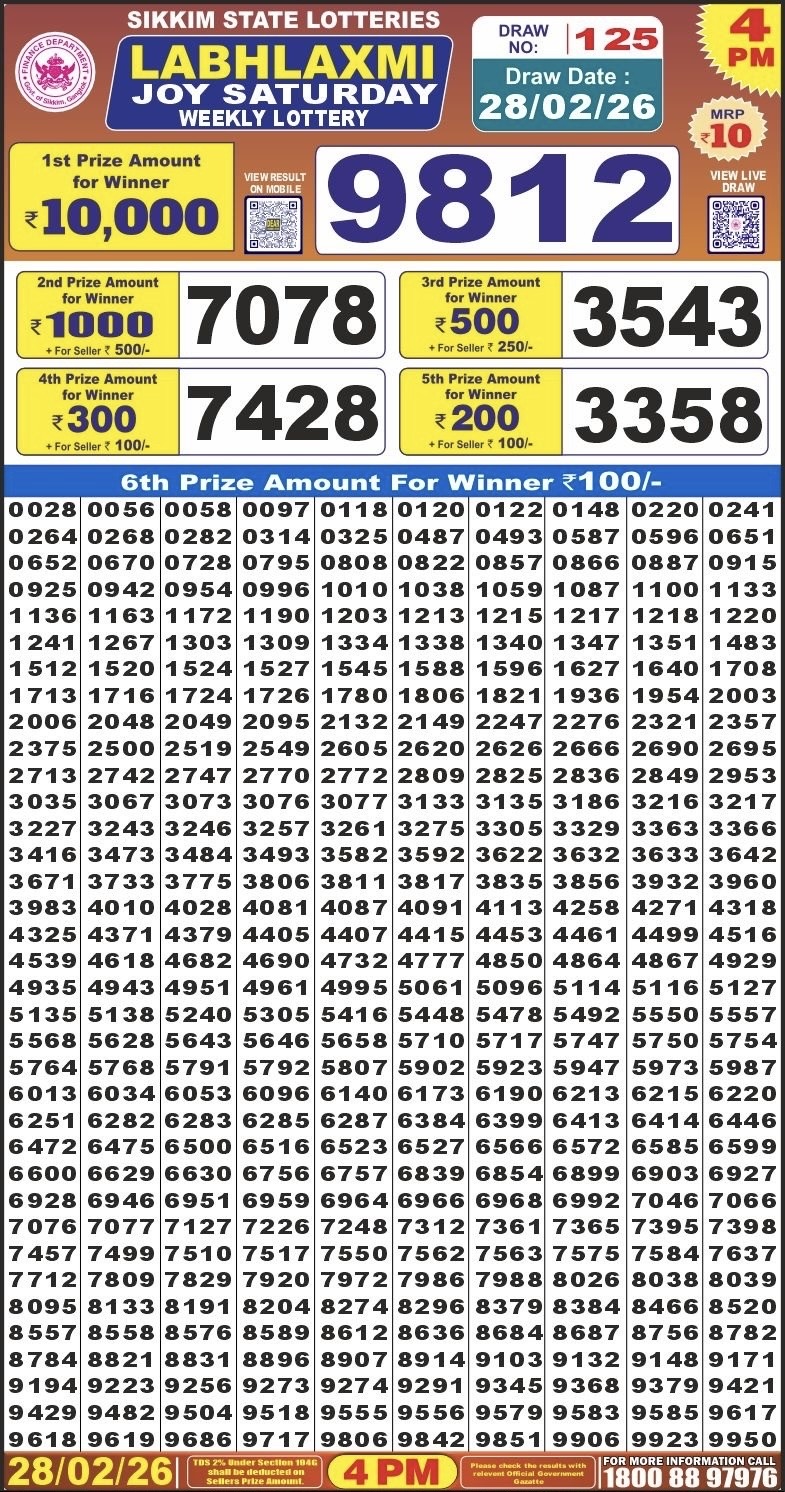 Rajshree 10 Evening Som Weekly Lottery 02.03.2026 Result 5.40 PM 0 Likes 42 Views Related Articles 0 48Punjab state dear 20 monthly lottery 24.2.2026 at 7pm 0 79Golden Star Ravi Weekly Lottery 25.01.2026 Result 9pm 0 96Nagaland state dear 2000 monthly lottery 8.11.2025 at 7pm 0 99Rajshree 10 evening Thursday 5:40pm result 24.07.2025