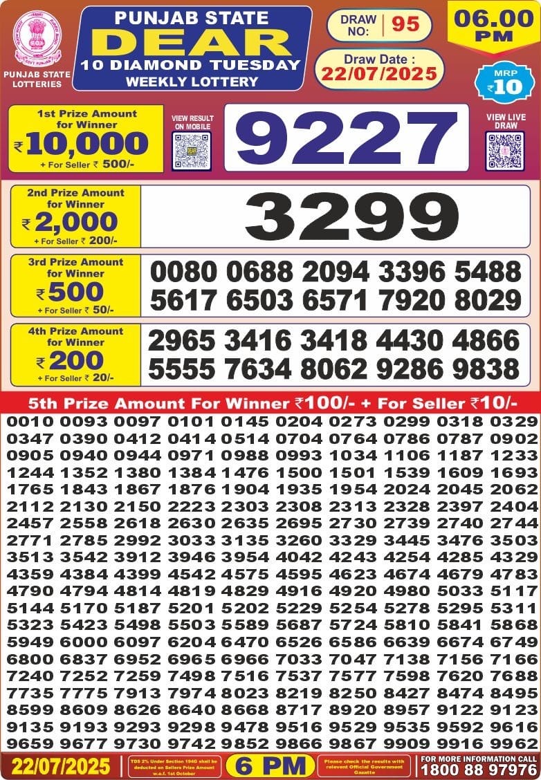 Rajshree 200 Monthly Lottery 18.12.2025 Result 6.30 PM 0 Likes 37 Views Related Articles 0 42Maharashtra Gajlaxmi Budh Weekly Draw 19.11.2025 Result 5pm 0 67Punjab State Dear 10 6pm weekly Lottery 22 July 2025 0 68Punjab State Dear Diwali Bumper 2025 Result Declared Soon 0 45Punjab State Dear 50 Buster Wednesday 6pm Lottery Result 12.11.2025
