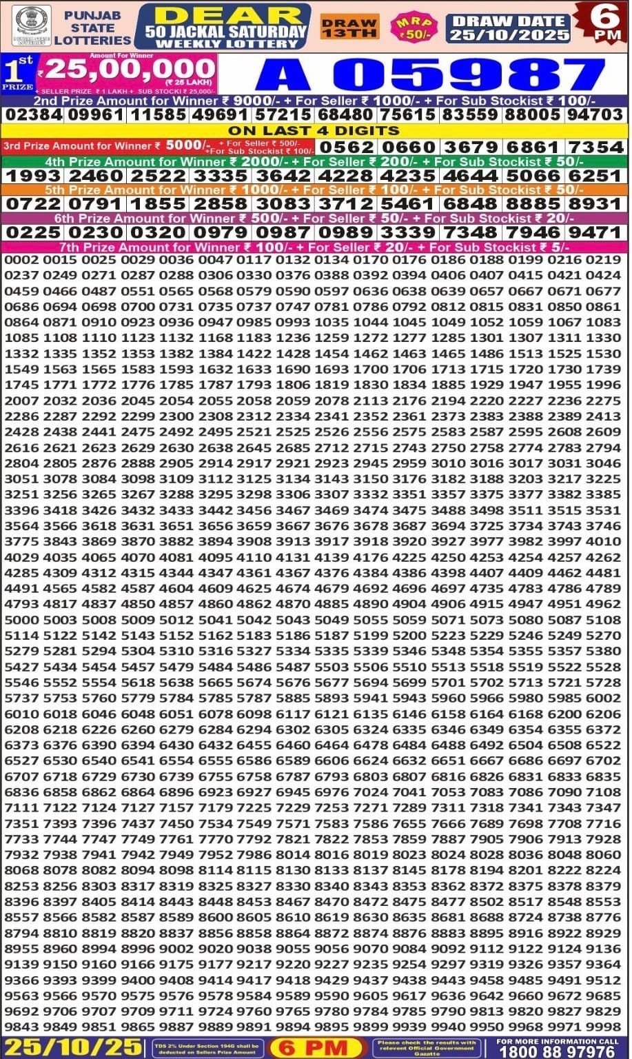 Rajshree 200 Monthly Lottery Result 18.09.2025 At 6.30 PM 0 Likes 59 Views Related Articles 0 49Golden 500 Gold Monthly Lottery 10.12.2025 Result 6.30 PM 0 31Punjab State Dear 50 Chief Thursday 6pm Lottery Result 18.12.2025 2 94Punjab state dear 200 monthly lottery 2.8.2025 result 8pm 0 57Punjab State Dear 50 Jackal Saturday 6pm Lottery Result 25.10.2025