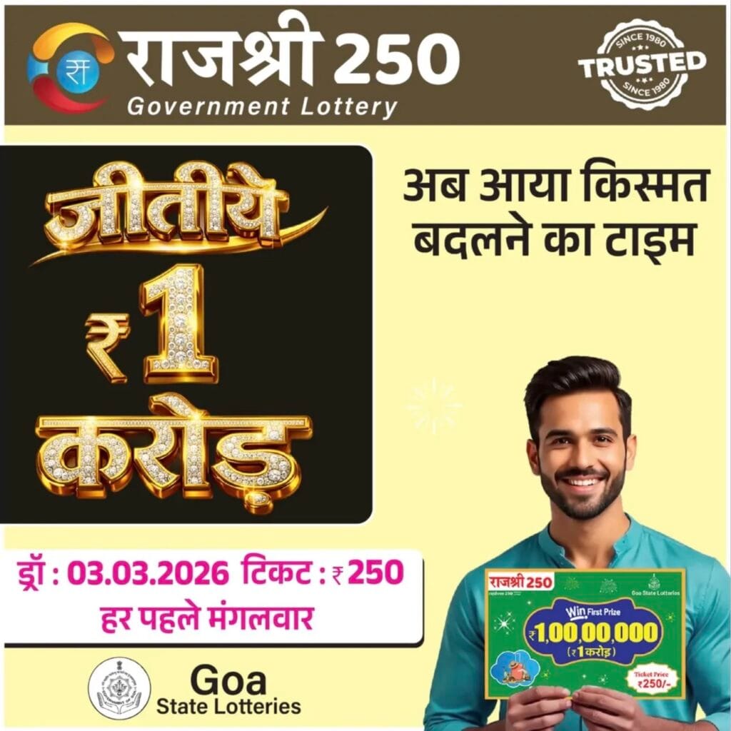 Goa State Rajshree 250 Monthly Lottery 20th Draw On Tuesday, 3 March 2026 At 6.30 PM Onwards. You Can Watch Result On lotteryresultsnow.in
