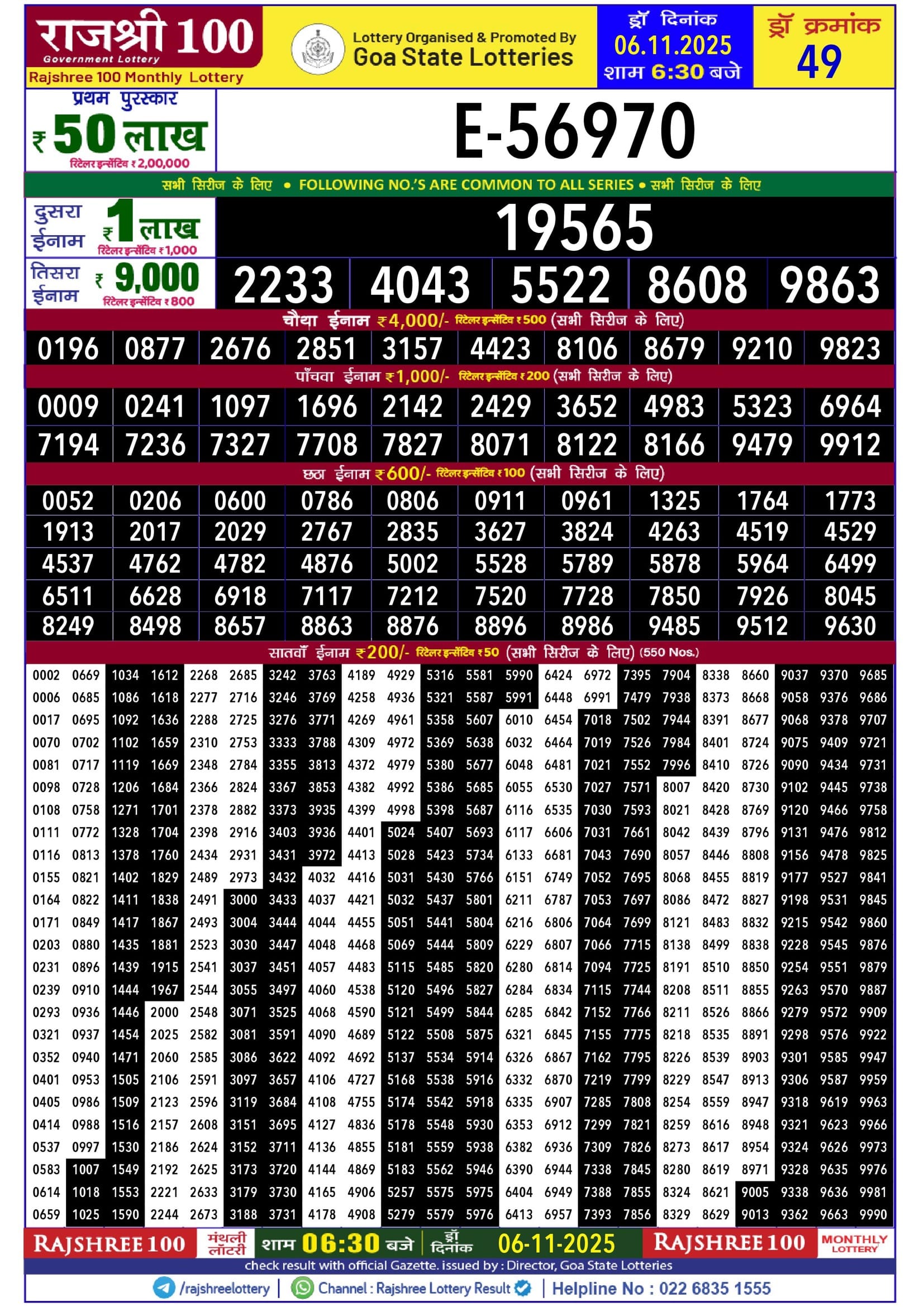 Rajshree 250 monthly lottery 7.10.2025 result 6.30pm 0 Likes 42 Views Related Articles 1 101Maharashtra Vaibhavlaxmi Weekly Draw Result 31.10.2025 0 86Maharashtra Sahyadri Vijayalaxmi Weekly Draw 05.11.2025 Result 4.30pm 0 71Labh Laxmi Glad weekly 4PM Result 24.07.2025 0 59Rajshree 100 Monthly Lottery 6.11.2025 Result 6.30pm