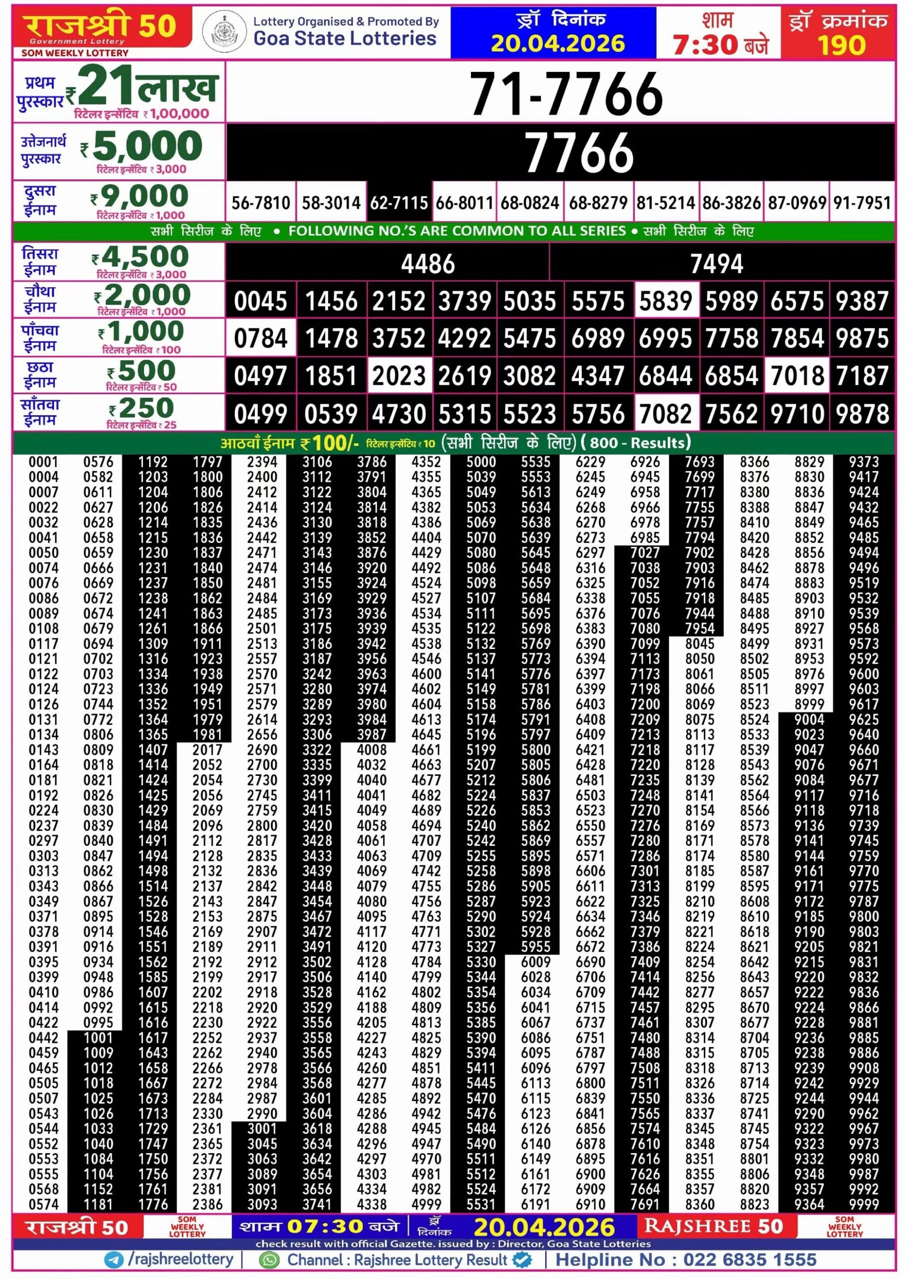 Goa State Rajshree 300 Monthly Lottery 21 April 2026 At 6.30 PM