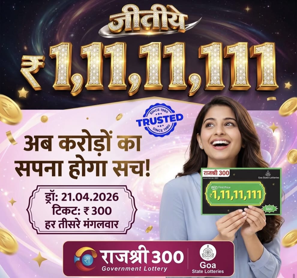 Goa State Rajshree 300 Monthly Lottery 3rd Draw On Tuesday, 21 April 2026 At 6.30 PM. You can watch result on our site lotteryresultsnow.in