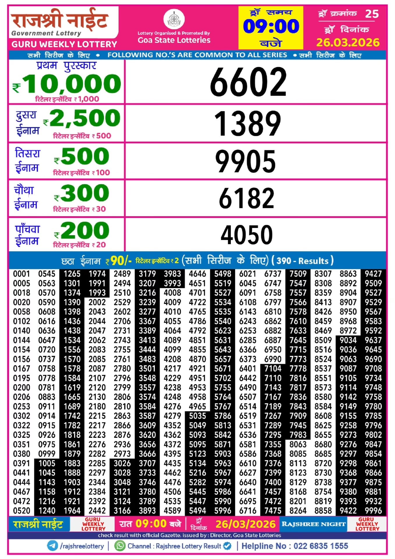 Rajshree 50 Guru Weekly Lottery 26.2.2026 Result 7.30 PM