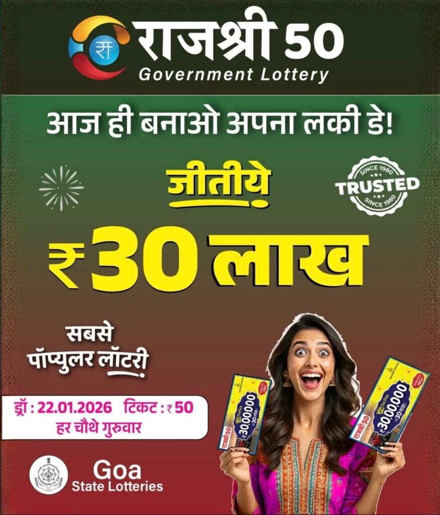 Goa State Rajshree 50 Monthly Lottery 22 January 2026 At 6.30pm