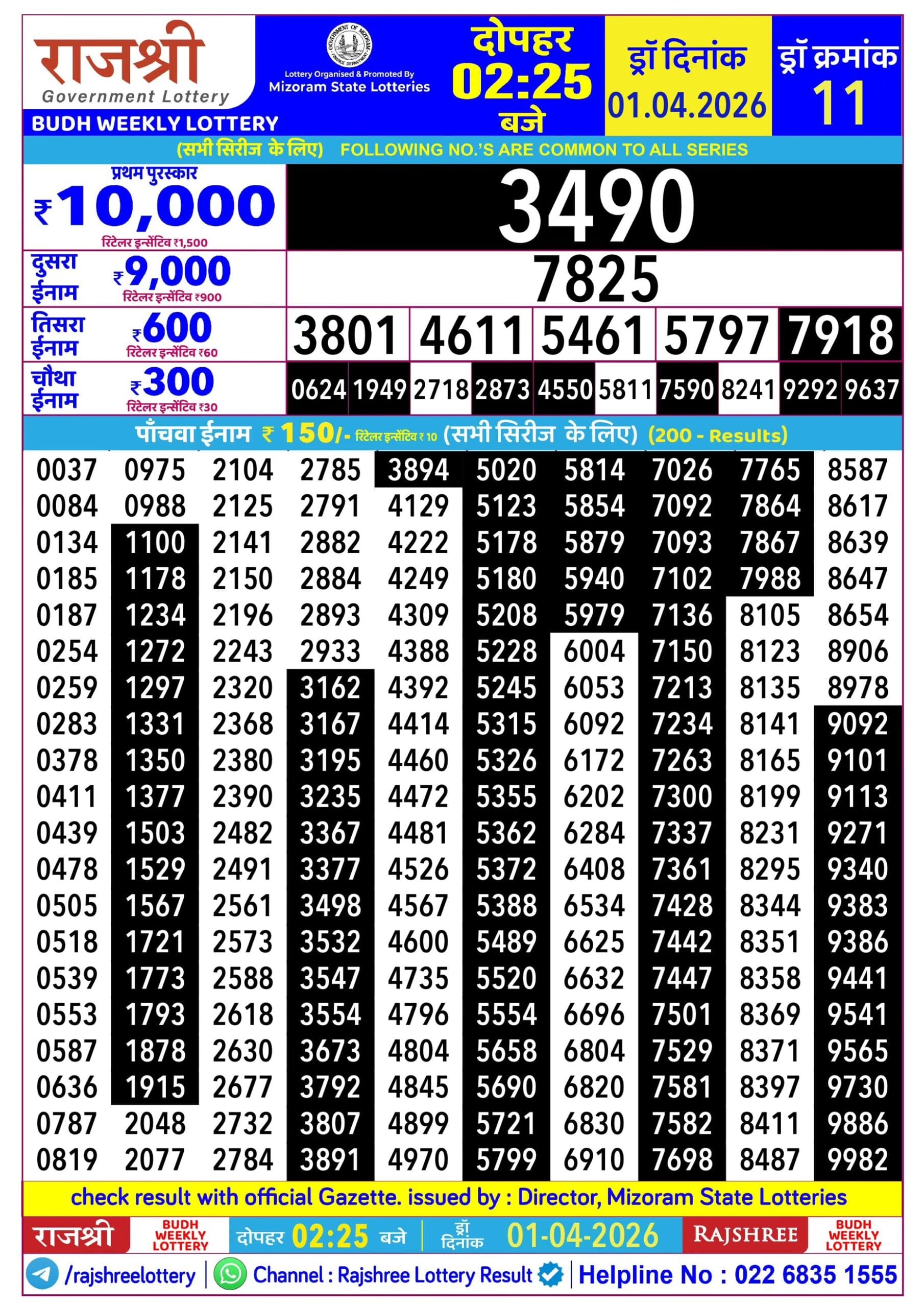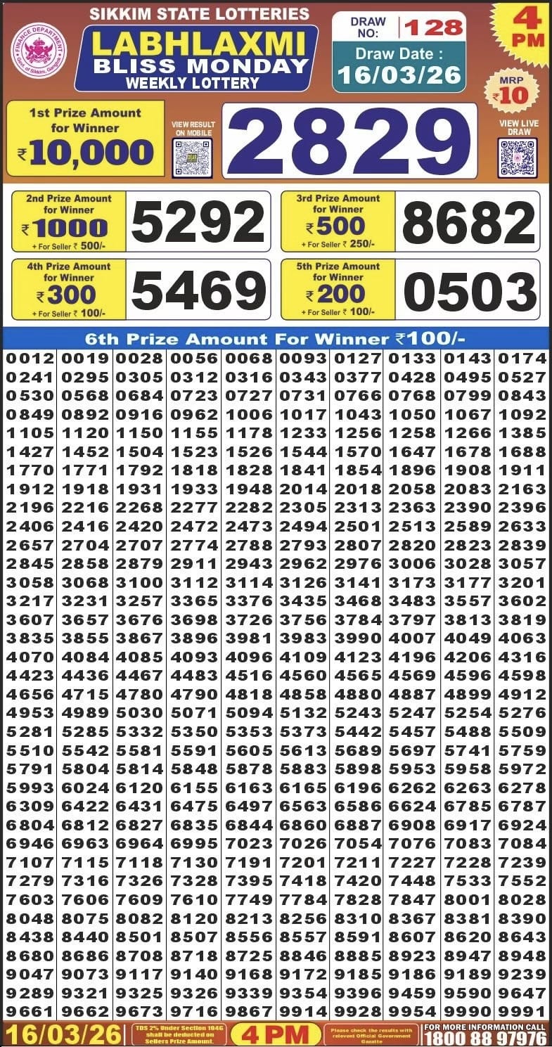 Rajshree 50 Ravi Weekly Lottery 29.03.2026 Result 7.30 PM 0 Likes 34 Views Related Articles 0 104Dear 10 violet lottery 1.30PM Result 20.07.2025 0 40Sikkim State Labhlaxmi Bliss Monday Weekly Lottery 16.03.2026 Result 4 PM 0 118Maharashtra Akshay Weekly Draw Result 18.03.2026 0 163Maharashtra Sahyadri (Monthly) Draw Result 10.02.2026