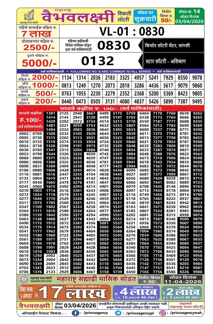 Rajshree 50 Shani Weekly Lottery 21.03.2026 Result 7.30 PM 0 Likes 68 Views Related Articles 0 36Rajshree 10 Evening Mangal Weekly Lottery 24.03.2026 Result 5.40 PM 0 39Rajshree Guru Weekly Lottery 02.04.2026 Result 7.30 PM 0 79Mizoram state golden 100 gold monthly lottery 7.1.2026 At 6.30 PM 0 59Rajshree 50 Som Weekly Lottery 02.03.2026 Result 7.30 PM
