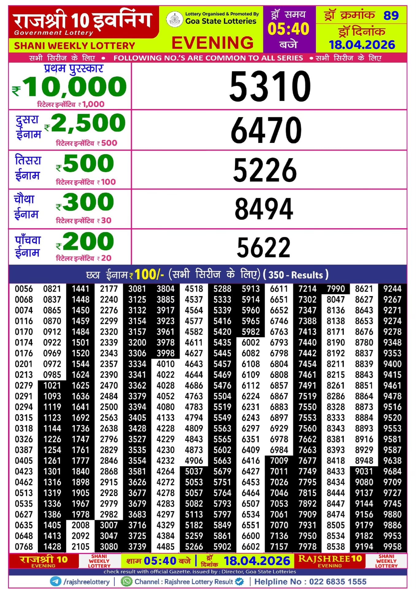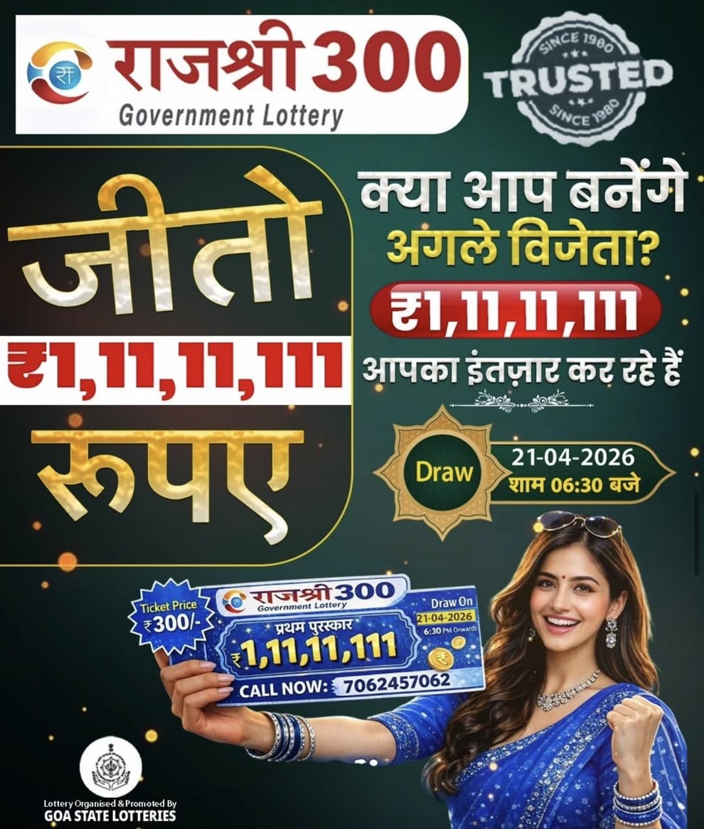 Rajshree 50 Som Monday Weekly Lottery 20.04.2026 Result 7.30 PM 0 Likes 6 Views Related Articles 0 73Maharashtra Ganeshlaxmi Bhagyashali Weekly Draw 12.01.2026 Result 5pm 0 112Rajshree 30 Lottery 8:30PM Result 24.07.2025 0 17Rajshree 10 Evening Shani Weekly Lottery 18.04.2026 Result 5.40 PM 0 163Maharashtra laxmi Weekly Draw Result 17.01.2026