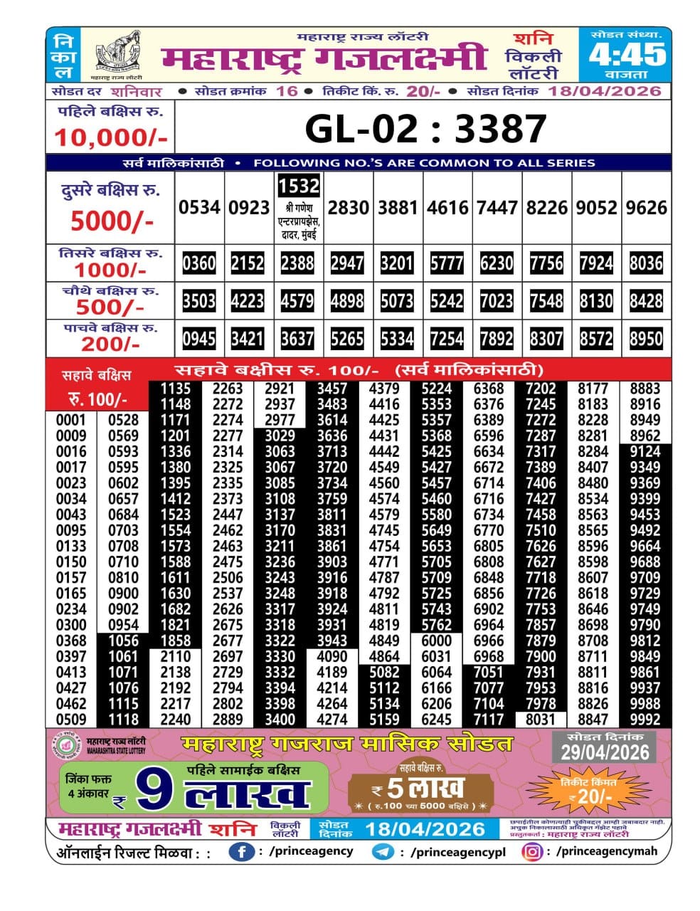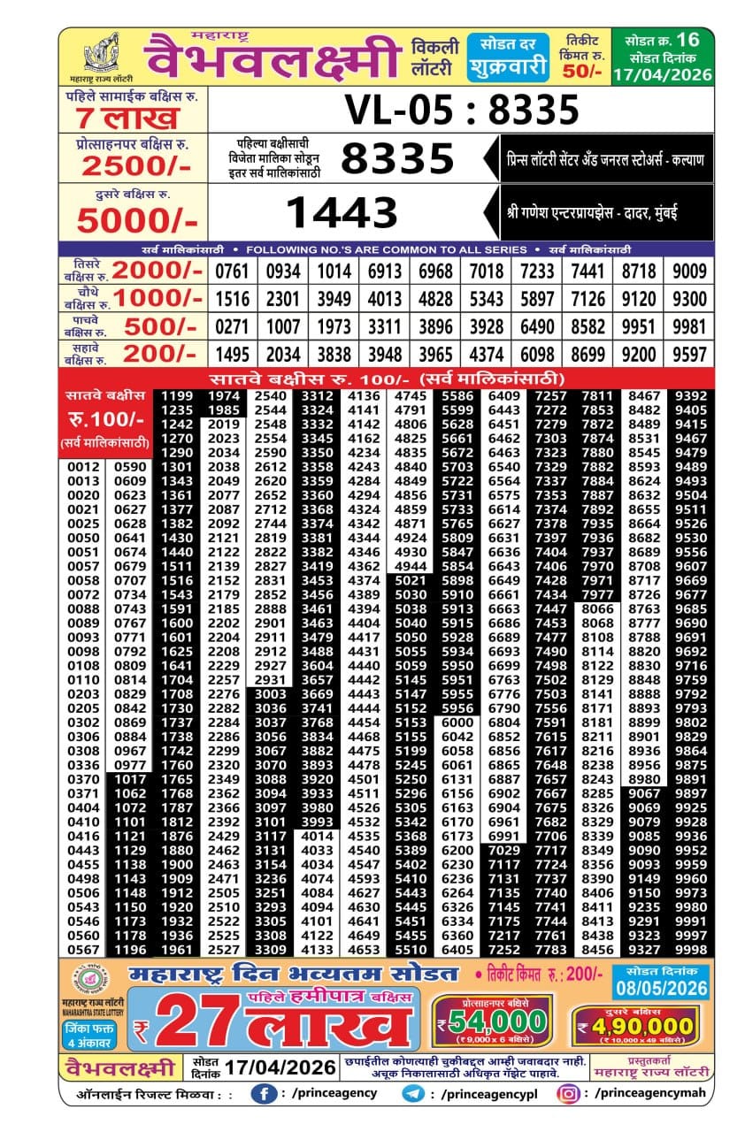 Rajshree 500 Monthly Lottery 14 April 2026 At 6.30 PM