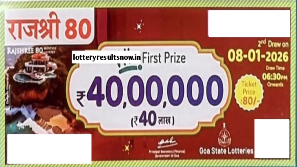 Goa State Rajshree 80 Monthly Lottery 2nd Draw On Thursday, 8 January 2026 At 6.30 PM Onwards. You Can Watch Result On lotteryresultsnow.in