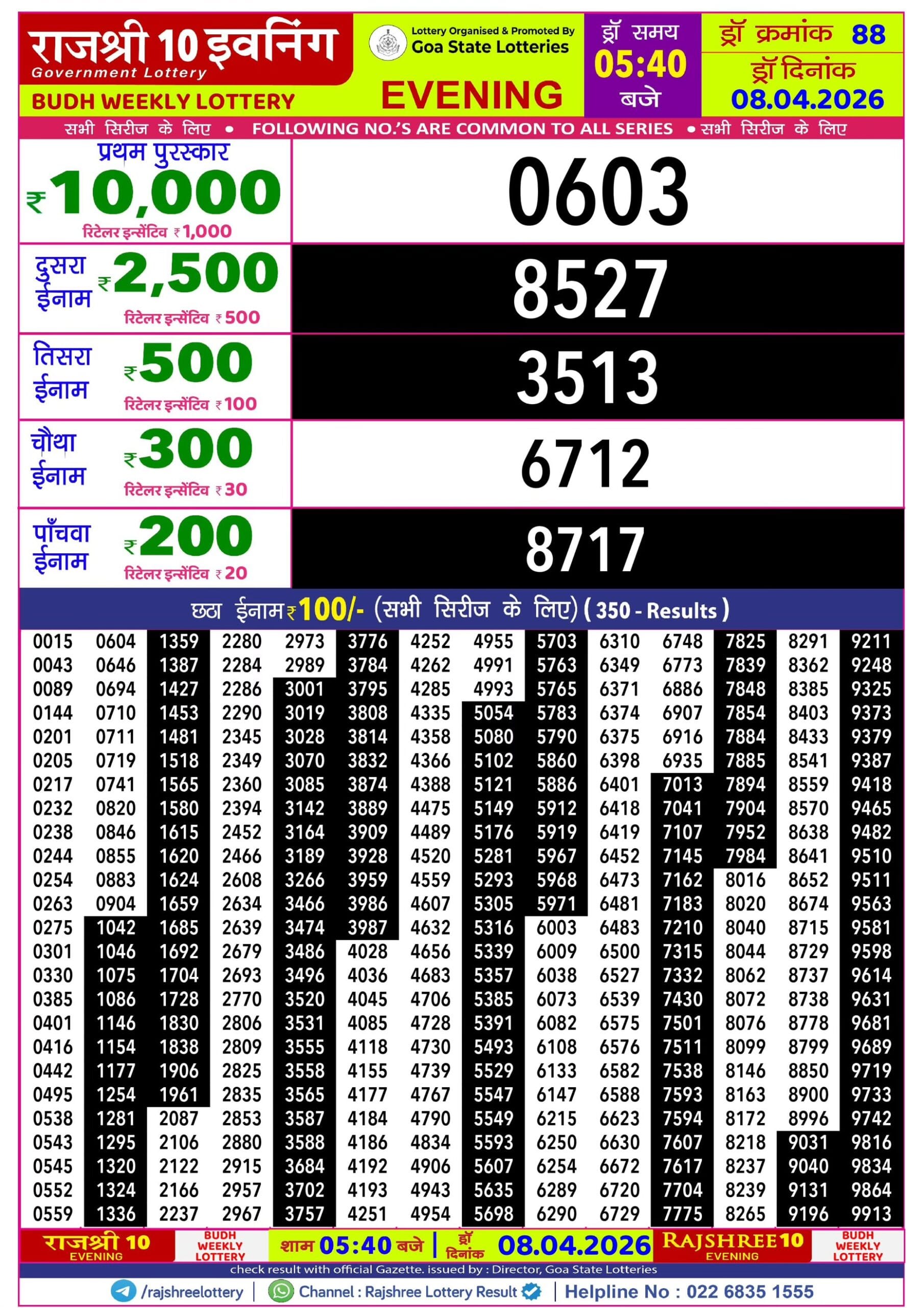 Rajshree Budh Weekly Lottery 18.2.2026 Result 2.25 PM