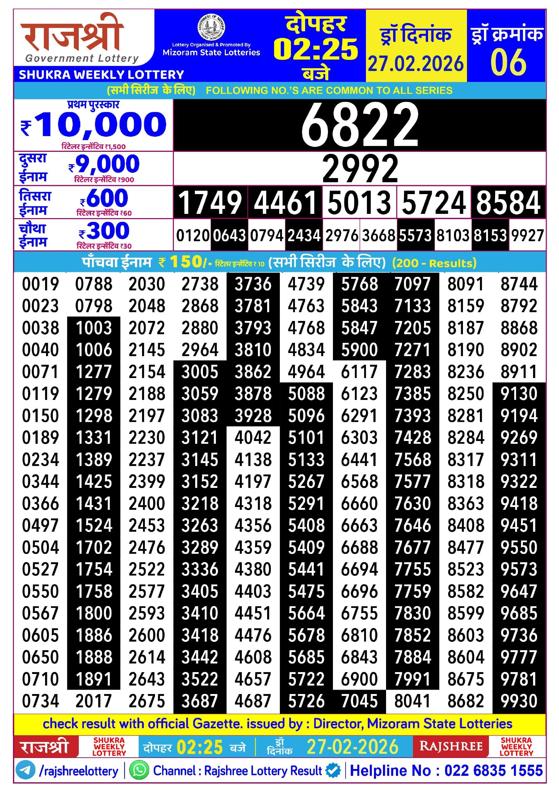 Rajshree Monday Weekly Lottery 02.03.2026 Result 8 PM 0 Likes 56 Views Related Articles 0 21Rajshree Night Ravi Weekly Lottery 29.03.2026 Result 9 PM 0 105Maybe Ganeshlaxmi Vaibhav Weekly Draw 16.11.2025 Result 5pm 0 48Rajshree Shukra Weekly Lottery 27.2.2026 Result 2.25 PM 0 121Maharashtra Sahyadri Dhanlaxmi Weekly Draw 05.01.2026 Result 4.30 PM