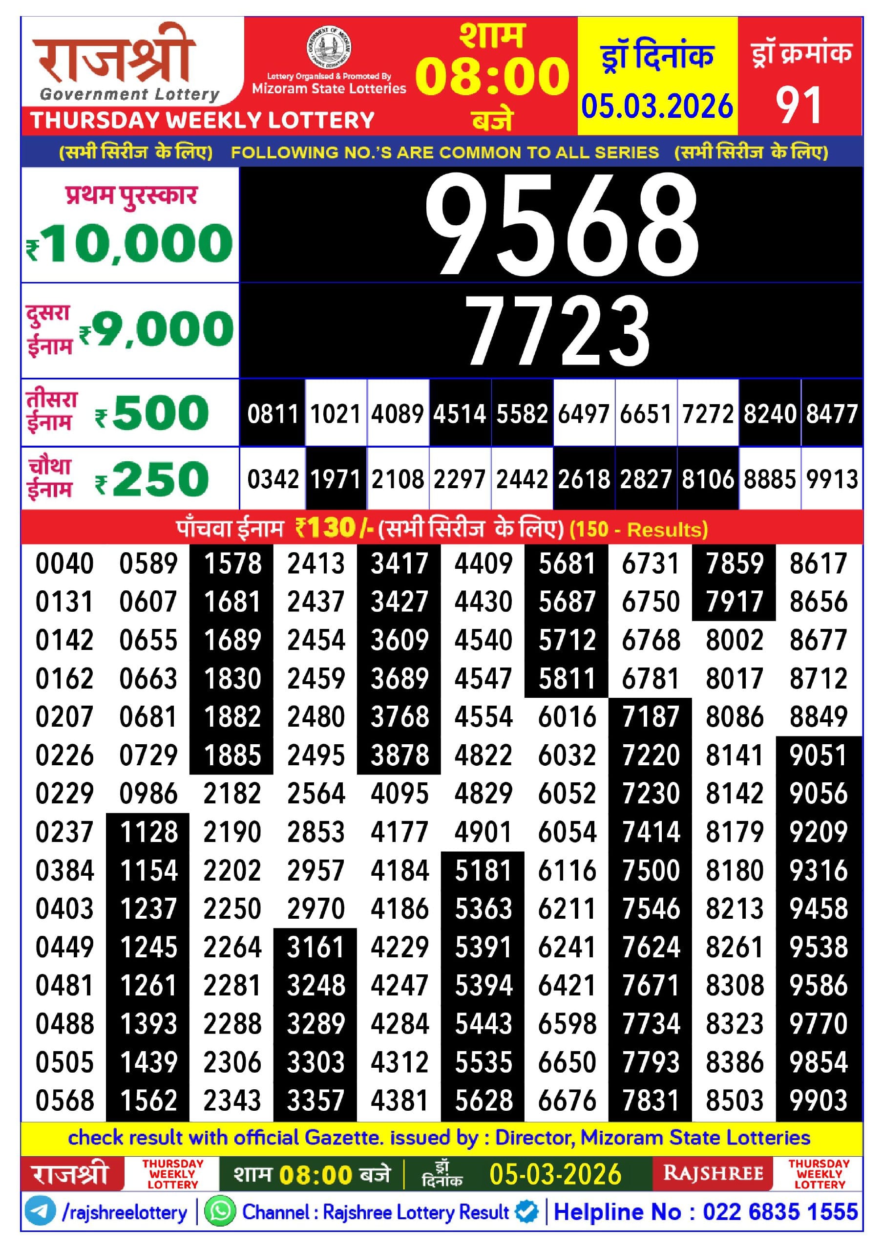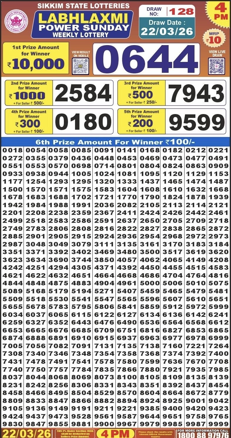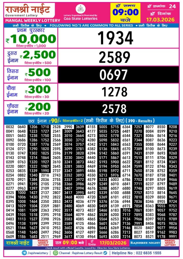 Rajshree Night Mangal Weekly Lottery 17.03.2026 Result 9 PM 0 Likes 52 Views Related Articles 0 67Maharashtralaxmi Weekly Draw Result 28.02.2026 0 94Punjab State Dear 50 Beast Monday Weekly Lottery 9.2.2026 Result 5 PM 0 45Golden Star Shukra Weekly Lottery 20.02.2026 Result 7 PM 0 46Rajshree Thursday Weekly Lottery 05.03.2026 Result 8 PM