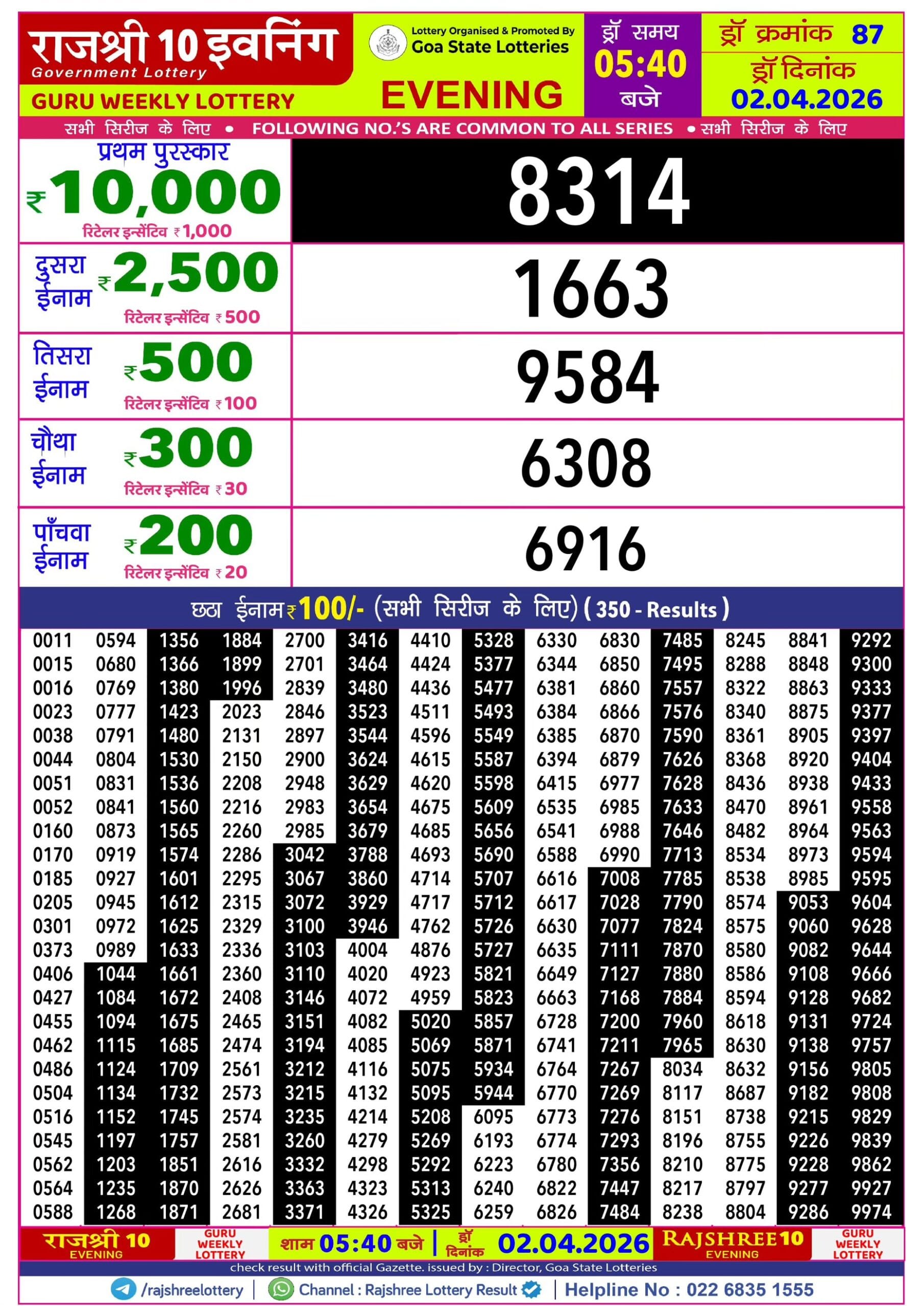Rajshree Night Som Weekly Lottery 30.03.2026 Result 9 PM 0 Likes 30 Views Related Articles 0 191Rajshree New Year Lohri Special Lottery 29.1.2026 At 6.30 PM 0 47Rajshree 10 Evening Sunday Weekly Lottery 15.02.2026 Result 5.40pm 0 28Rajshree Night Som Weekly Lottery 16.03.2026 Result 9 PM 0 33Rajshree 10 Evening Guru Weekly Lottery 02.04.2026 Result 5.40 PM