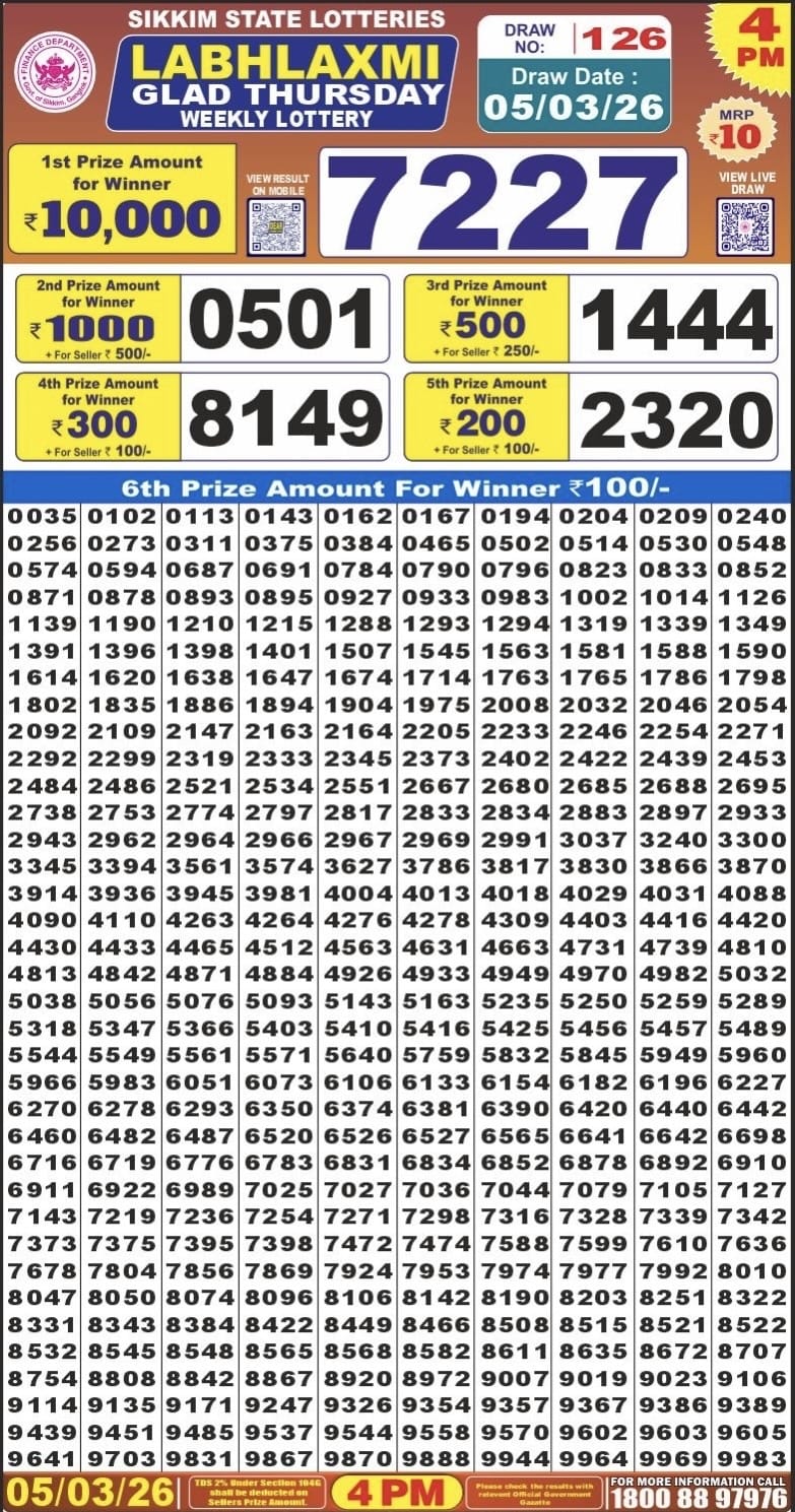 Rajshree Ravi Weekly Lottery 01.03.2026 Result 2.25 PM